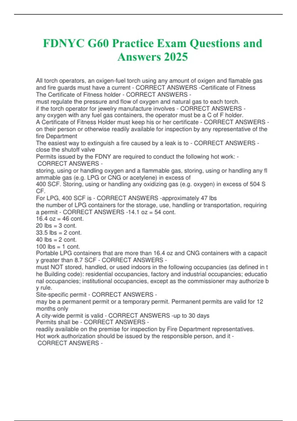 FDNYC G60 Practice Exam Questions and
