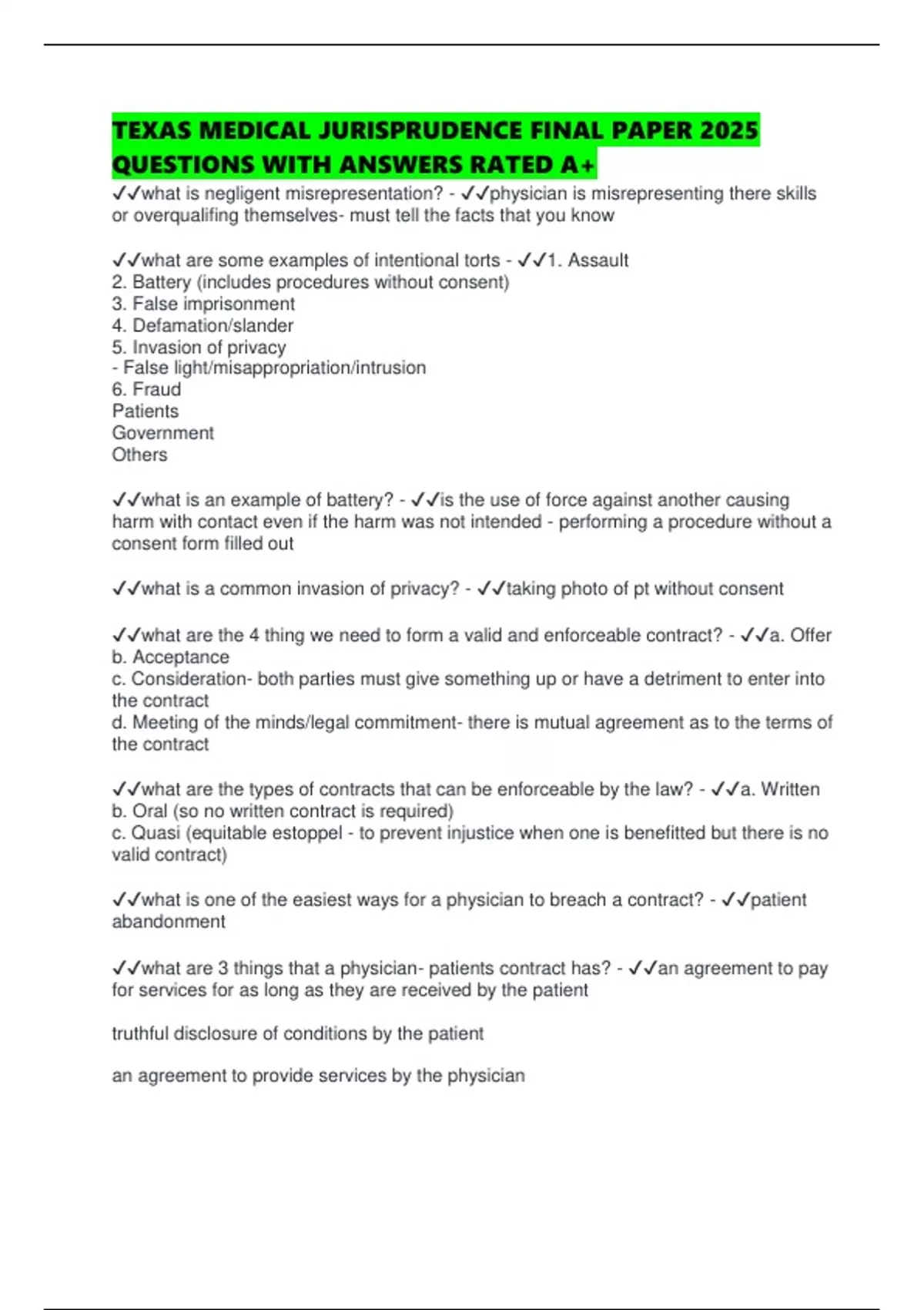 ✔✔what are 3 things that a physician- patients contract has? - ✔✔an agreement to pay