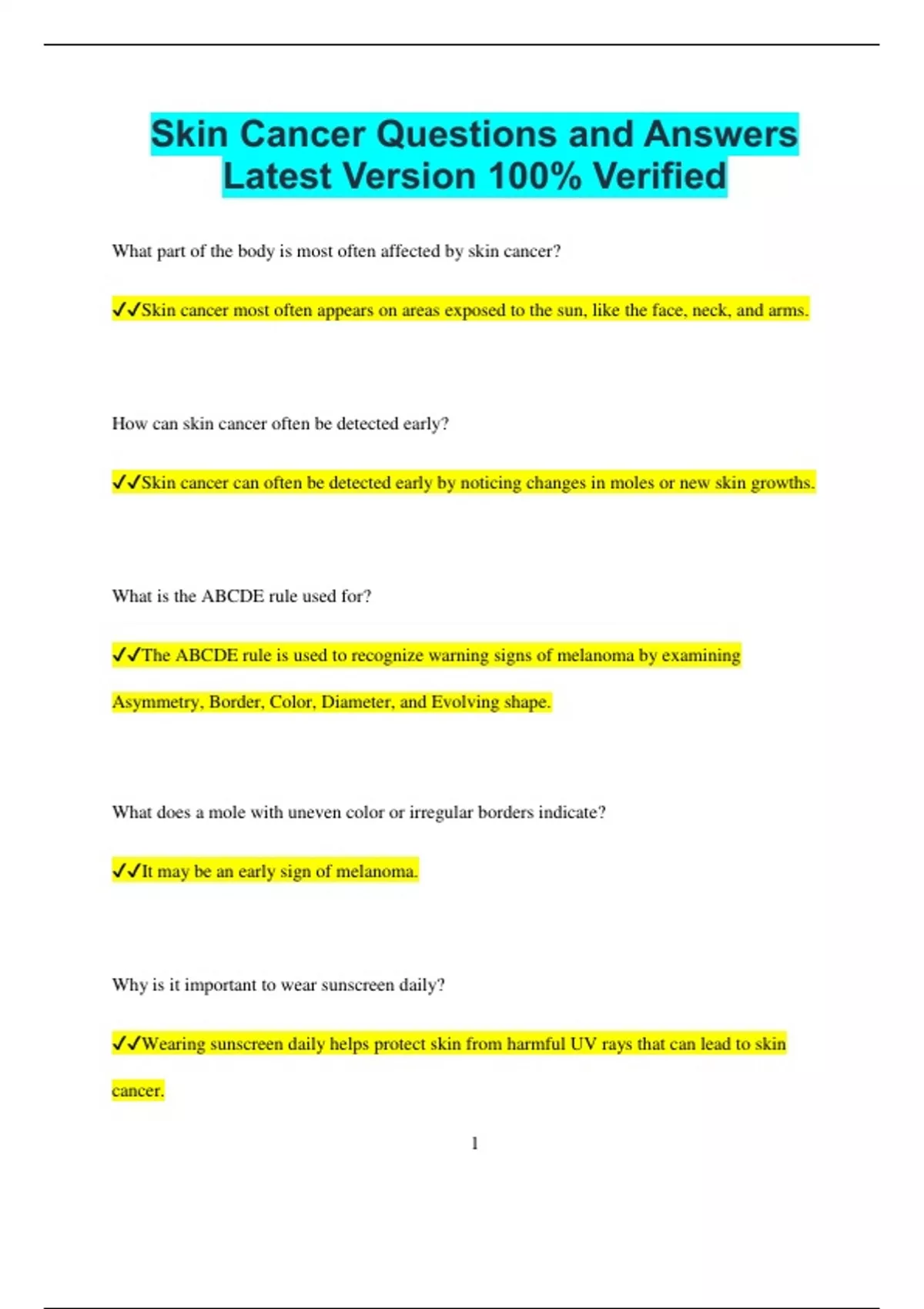 ✔✔Many cases of skin cancer are preventable through sun protection and regular skin checks.