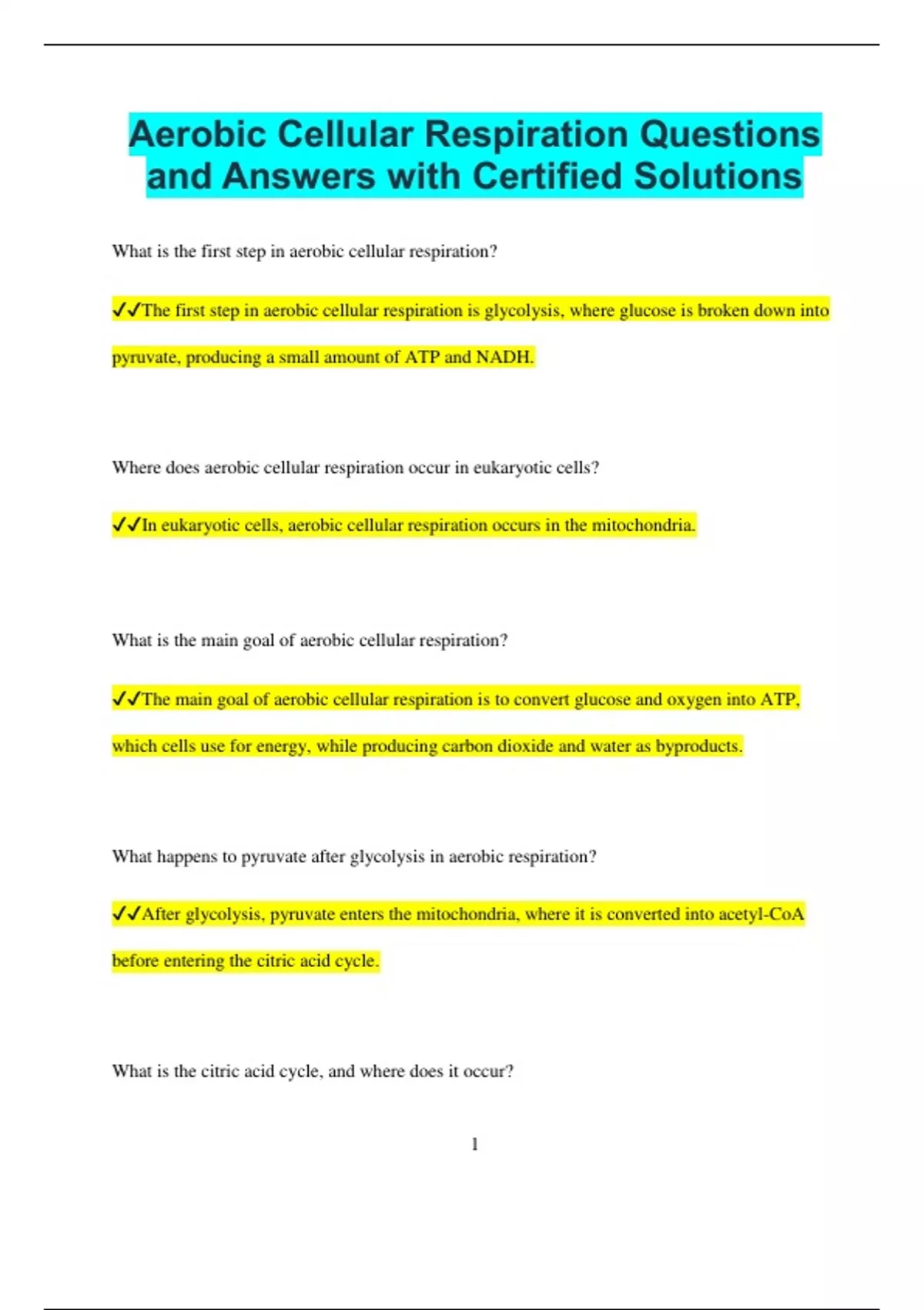✔✔The first step in aerobic cellular respiration is glycolysis, where glucose is broken down into