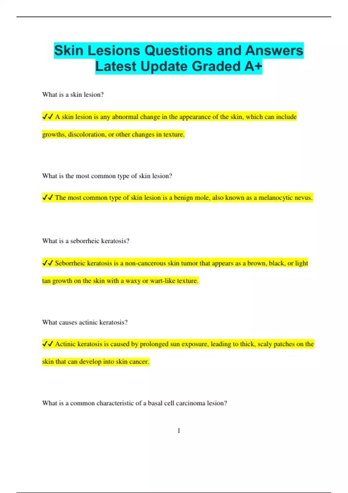 ✔✔ The most common type of skin lesion is a benign mole, also known as a melanocytic nevus.