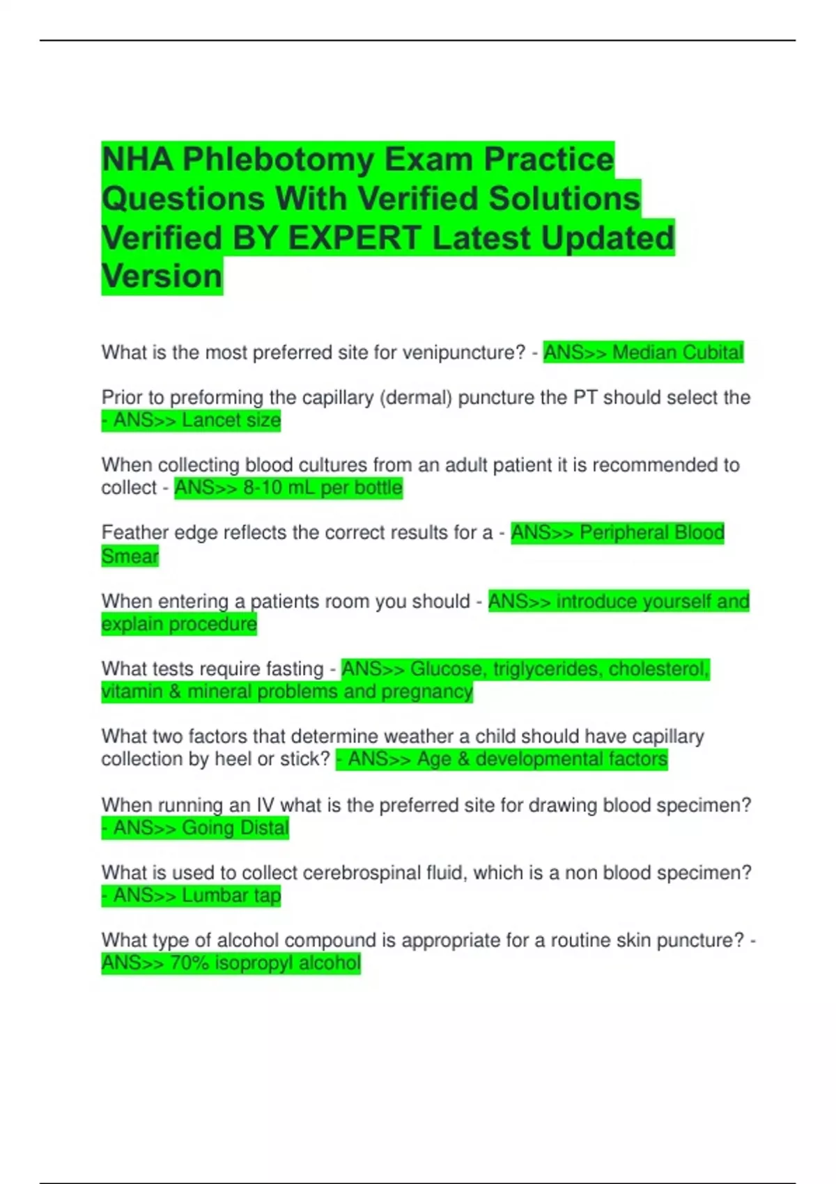What is the most preferred site for venipuncture? - ANS>> Median Cubital