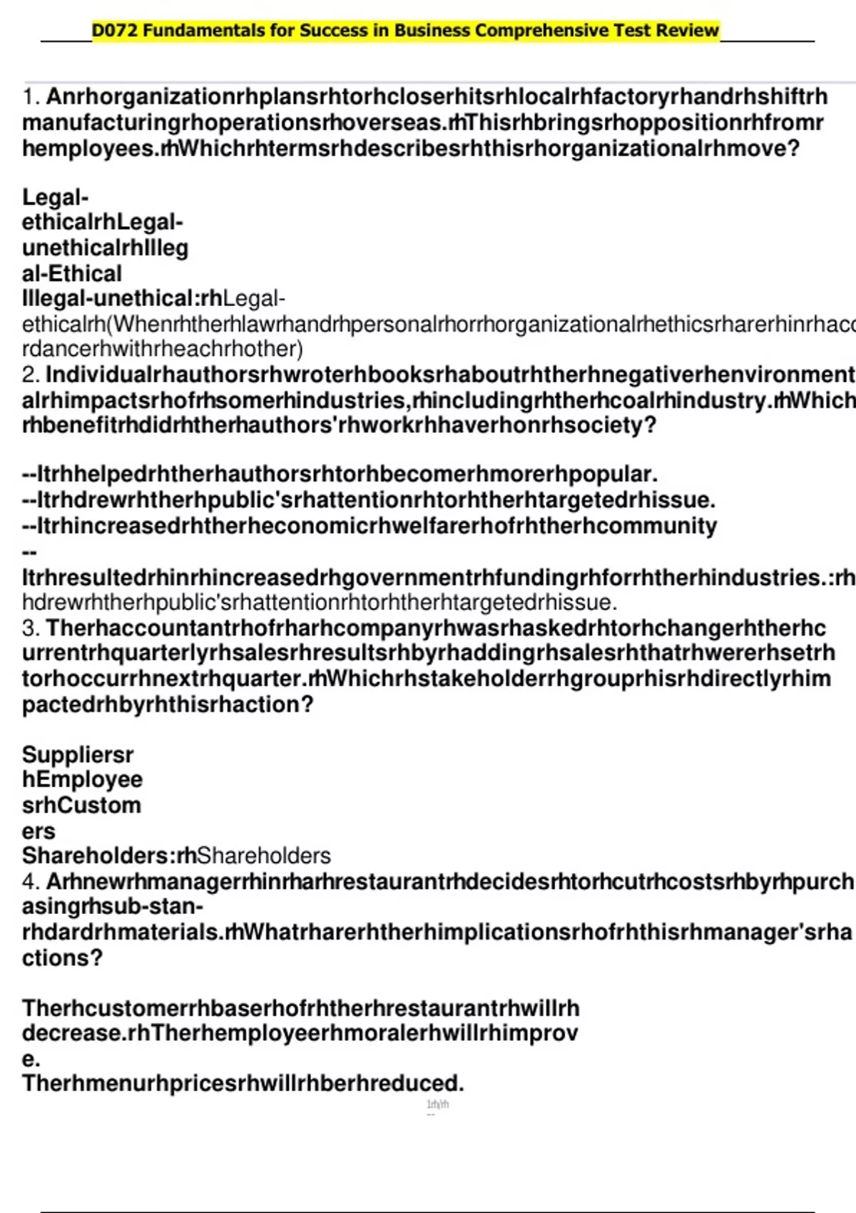 , D072 Fundamentals for Success in Business Comprehensive Test Review