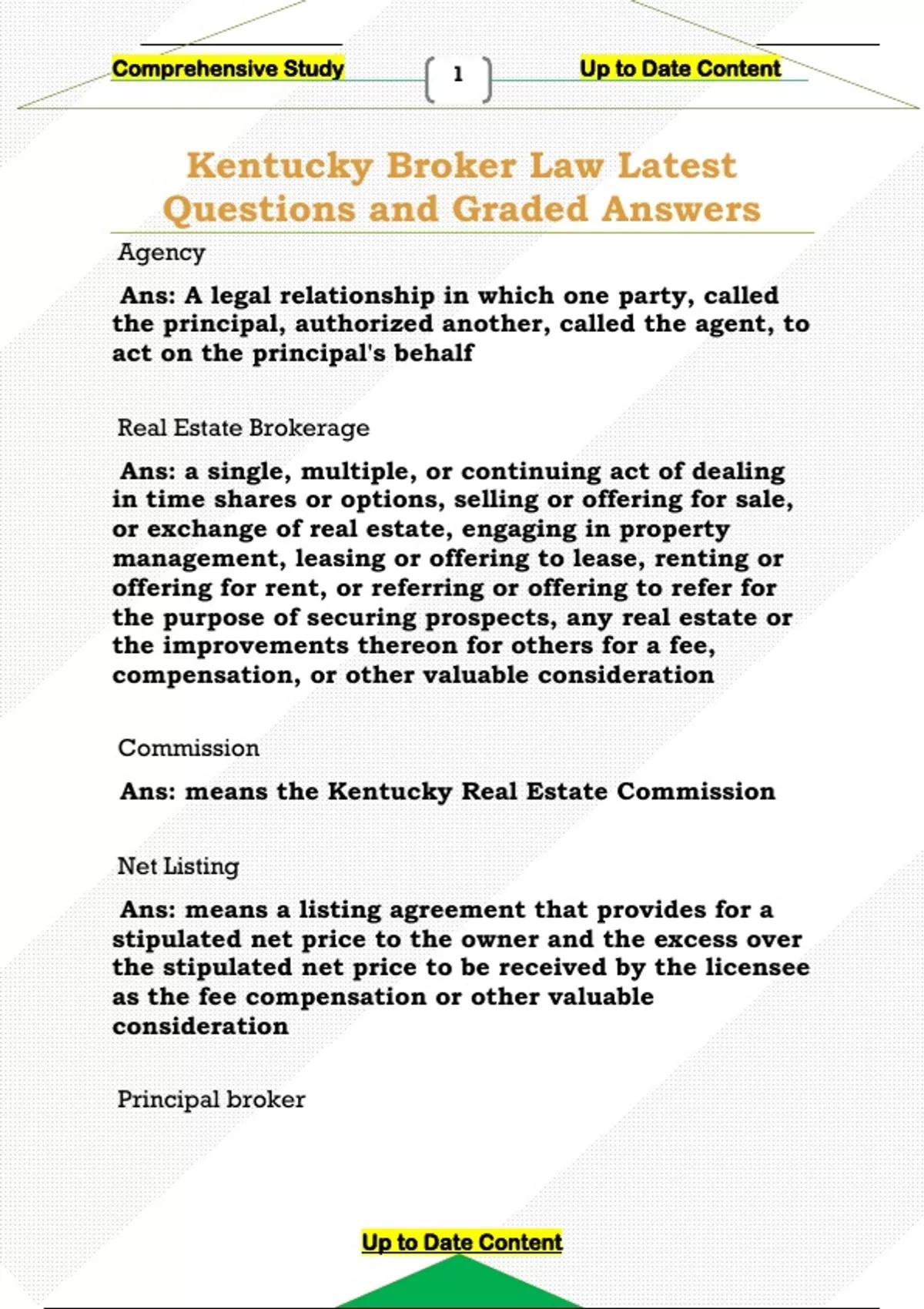 Kentucky Broker Law Latest Questions and Graded Answers