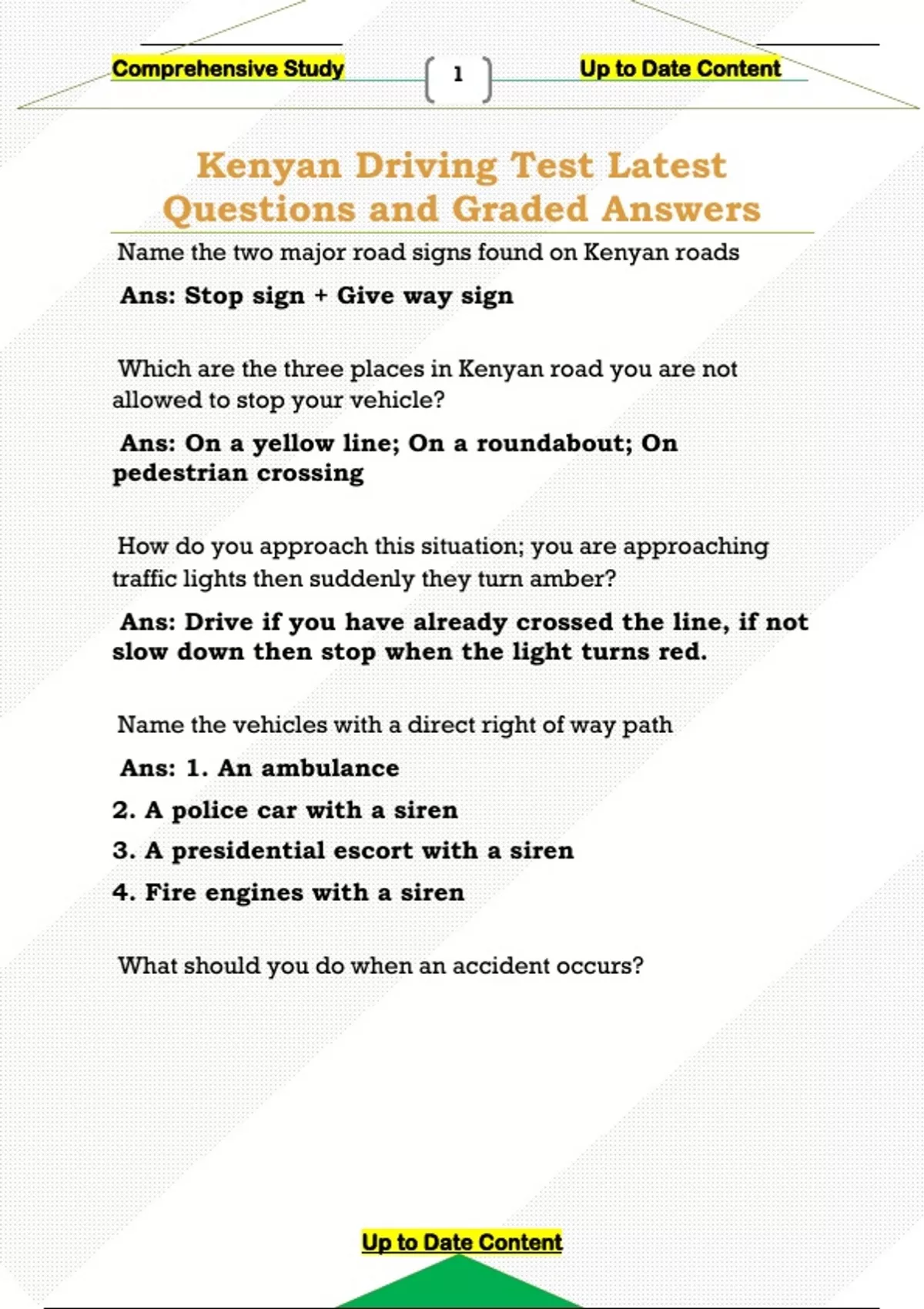 Kenyan Driving Test Latest Questions and Graded Answers Kenyan Driving Test Latest Questions and Graded Answers