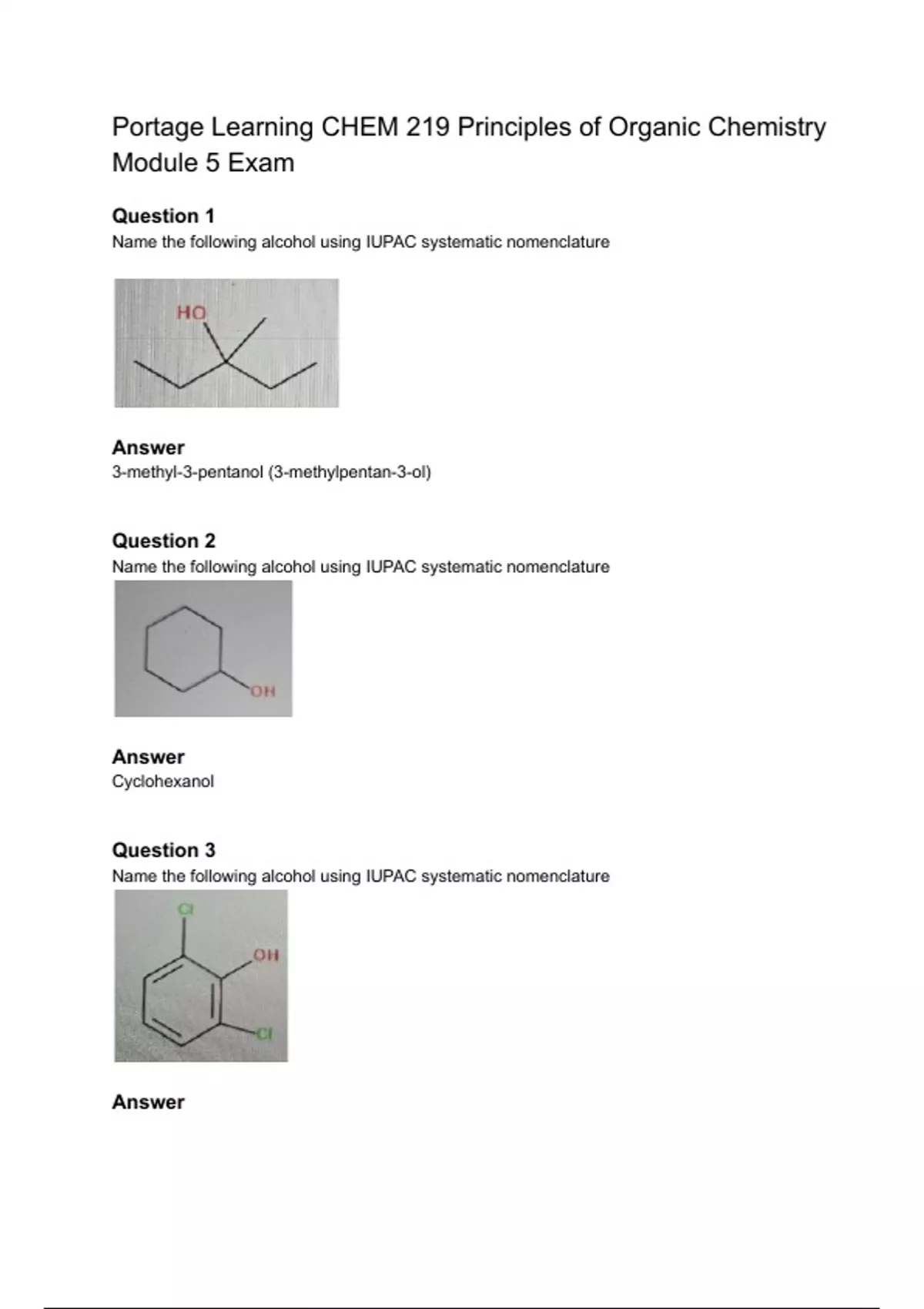 Portage Learning CHEM 219 Principles of Organic Chemistry