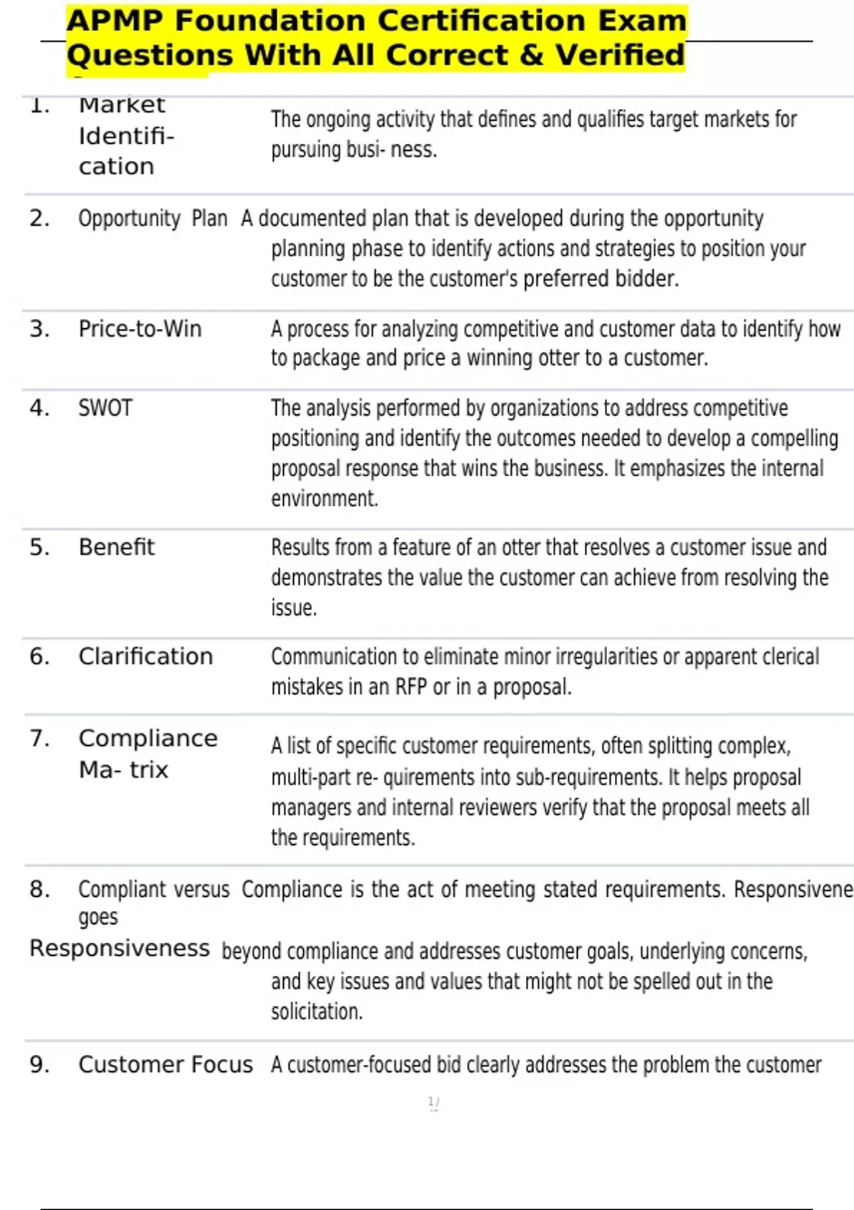 APMP Foundation Certification Exam Questions With All Correct & Verified Answers