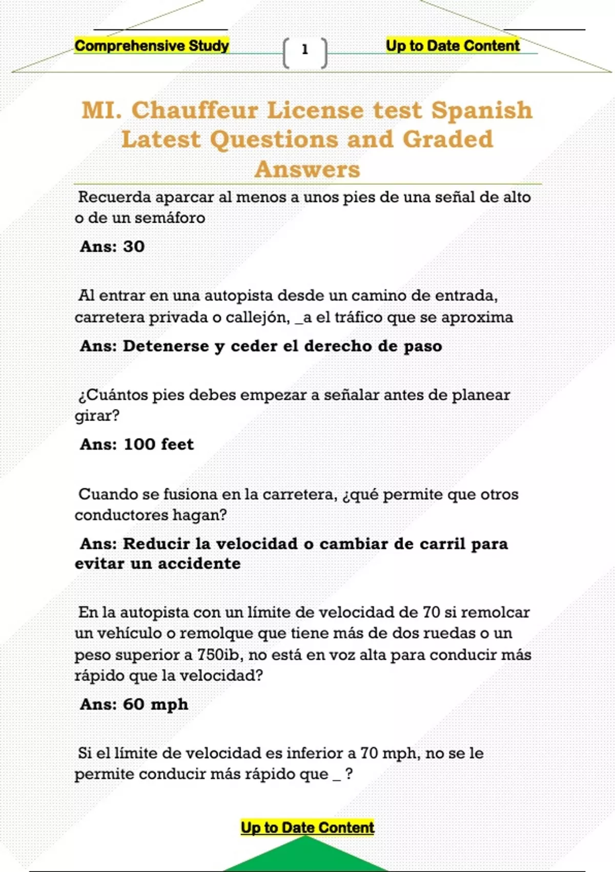 MI. Chauffeur License test Spanish Latest Questions and Graded Answers