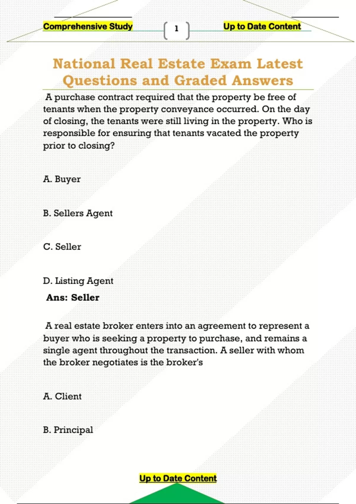 National Real Estate Exam Latest