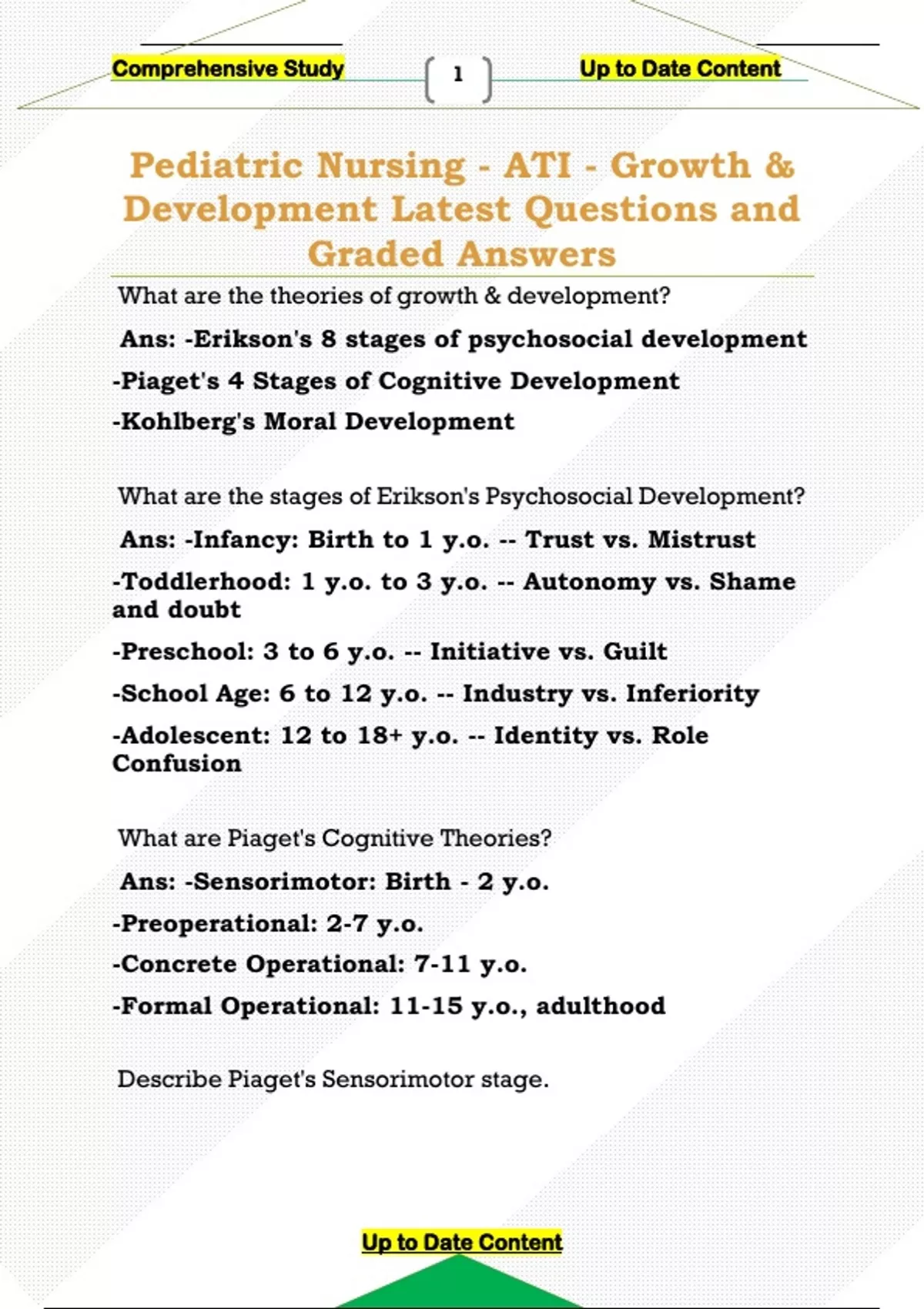 Pediatric Nursing - ATI - Growth & Development Latest Questions and Graded Answers
