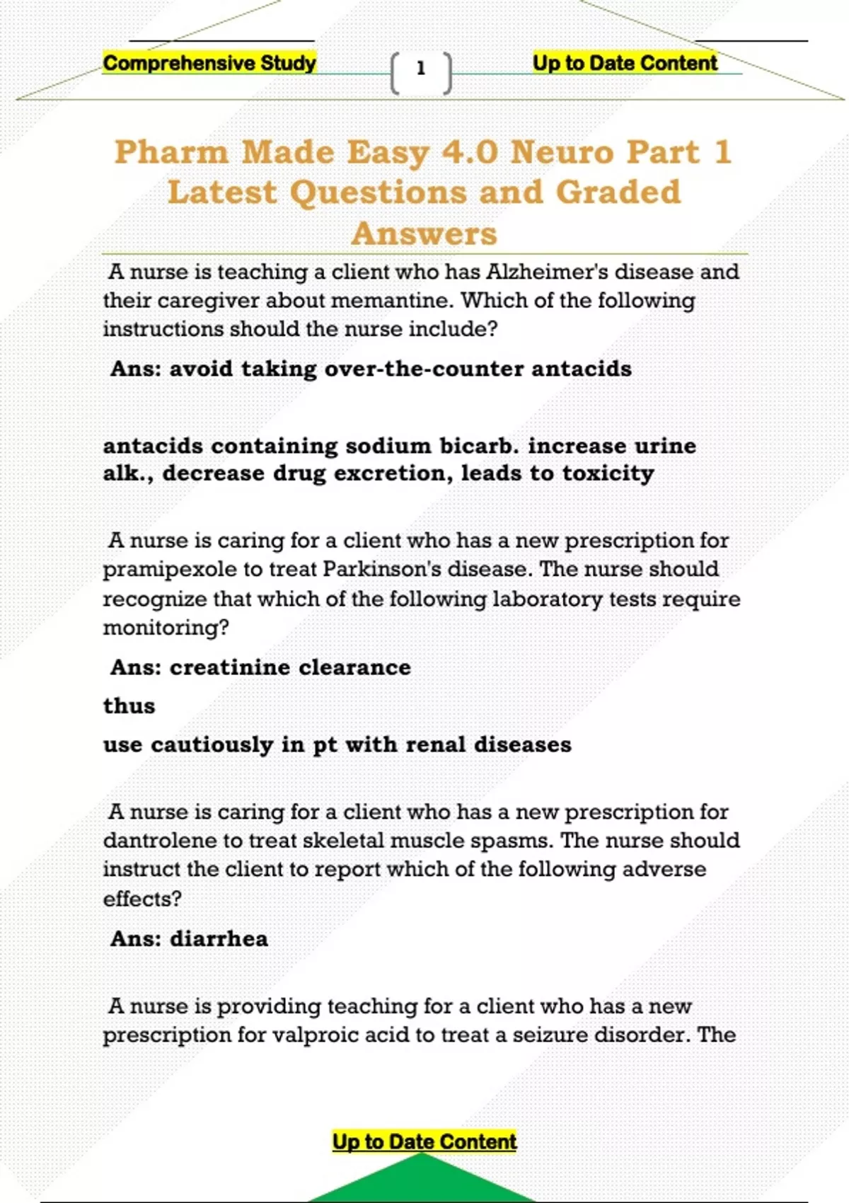 Pharm Made Easy 4.0 Neuro Part 1 Latest Questions and Graded Answers