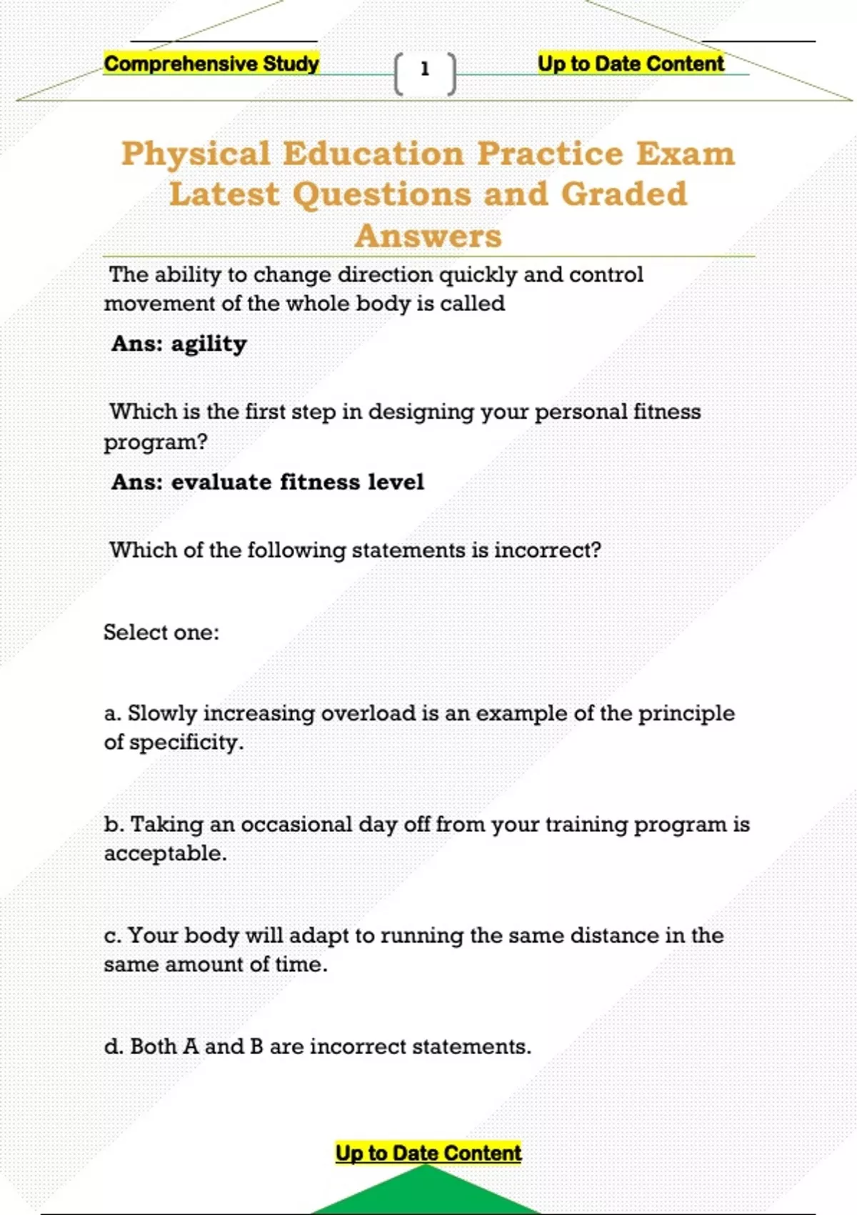 Physical Education Practice Exam Latest Questions and Graded Answers