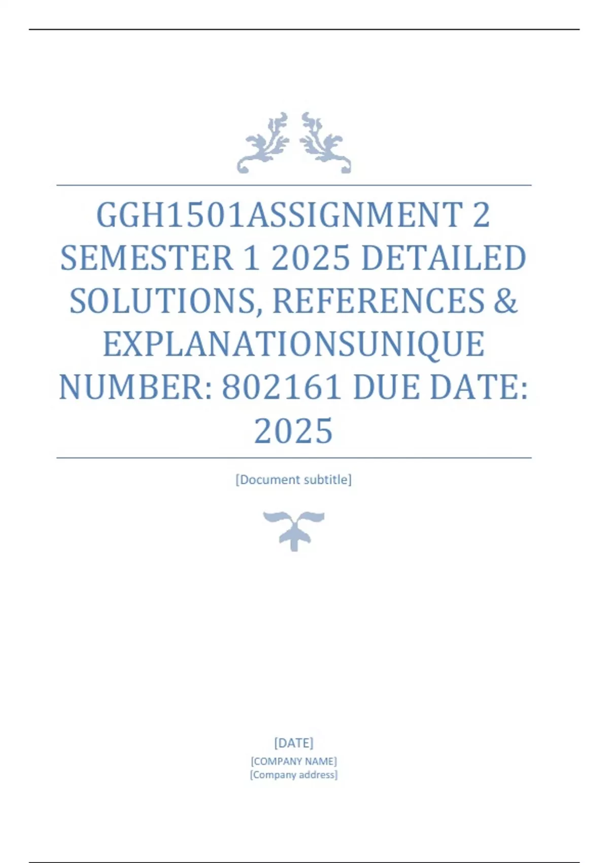 GGH1501ASSIGNMENT 2 SEMESTER 1 2025 DETAILED SOLUTIONS, REFERENCES & EXPLANATIONSUNIQUE NUMBER: 802161 DUE DATE: 2025