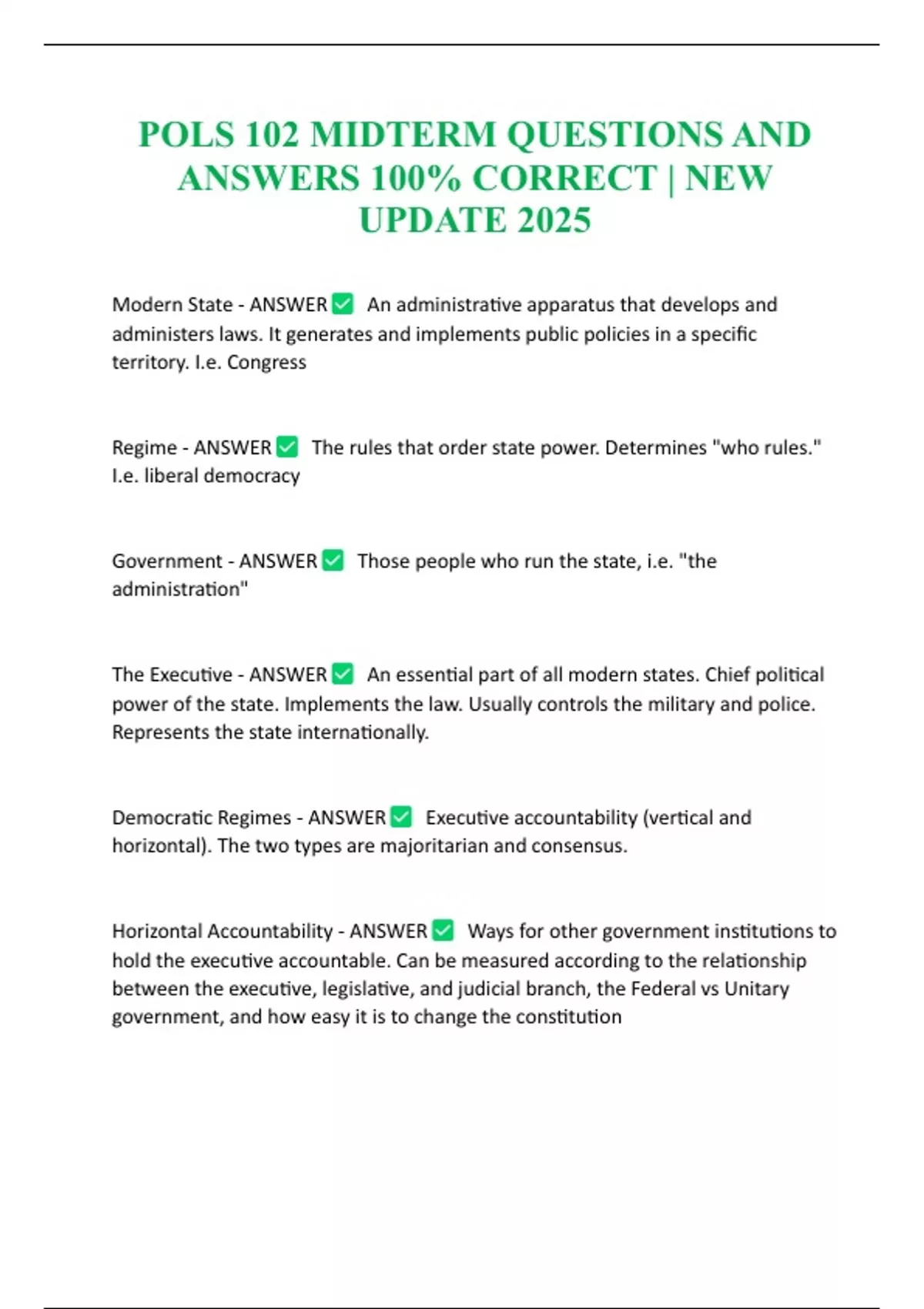POLS 102 MIDTERM QUESTIONS AND