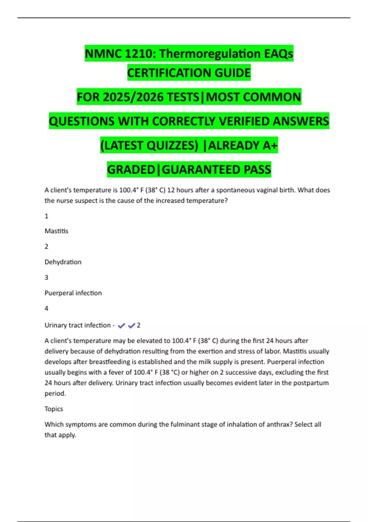 QUESTIONS WITH CORRECTLY VERIFIED ANSWERS