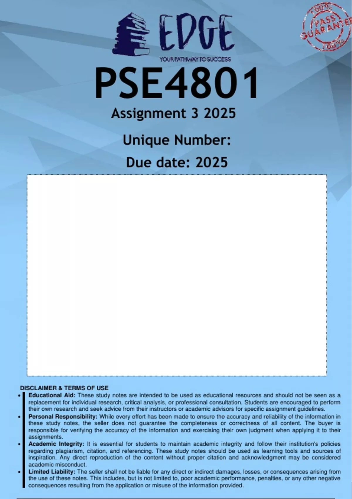 PSE4801 Assignment 3 (ANSWERS) 2025 - DISTINCTION GUARANTEED