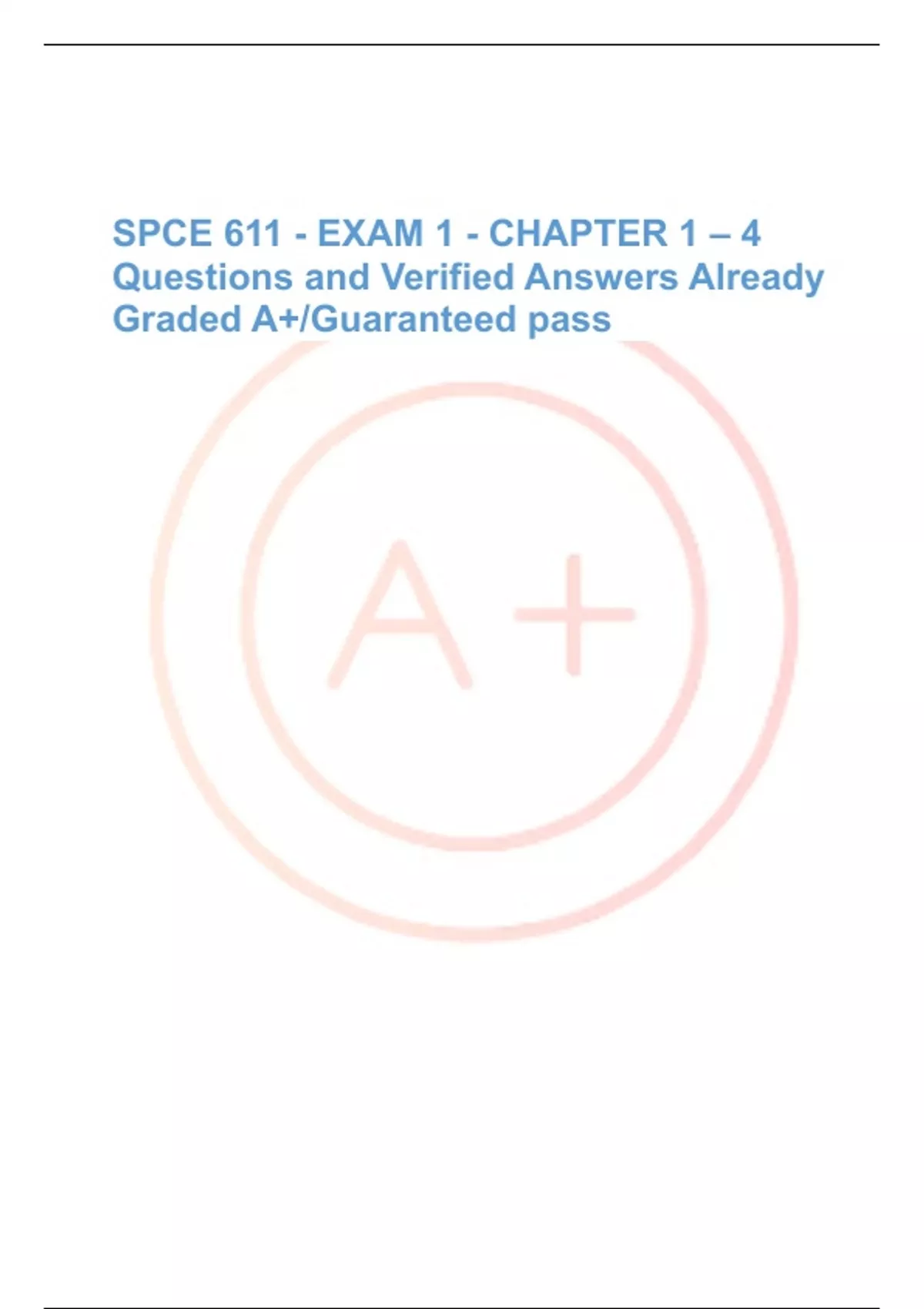 SPCE 611 - EXAM 1 - CHAPTER 1 – 4 Questions and Verified Answers Already Graded A+/Guaranteed pass
