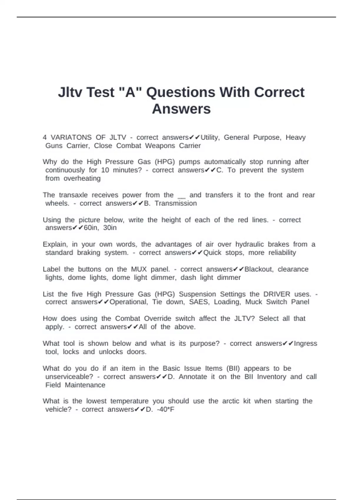 bcorrect banswers✔✔B. bFacing bthe bJLTV bso bif byou bfall, byour bback bhits bthe bground