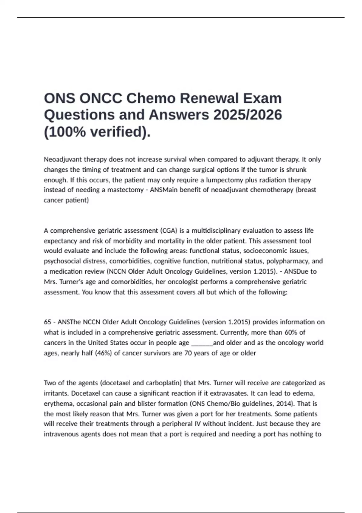 65 |- |ANSThe |NCCN |Older |Adult |Oncology |Guidelines |(version |1.2015) |provides |information |on |
