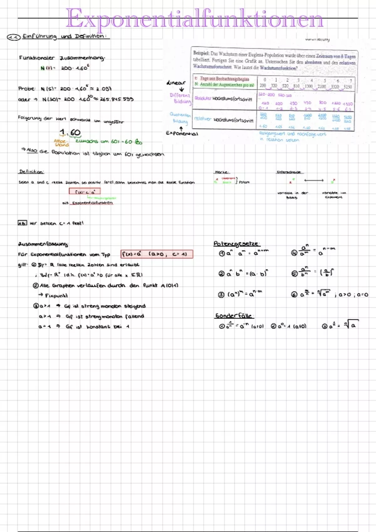 Zusammenfassung Exponentialfunktionen – inkl. Aufgaben & Lösungen (Abi Mathe)