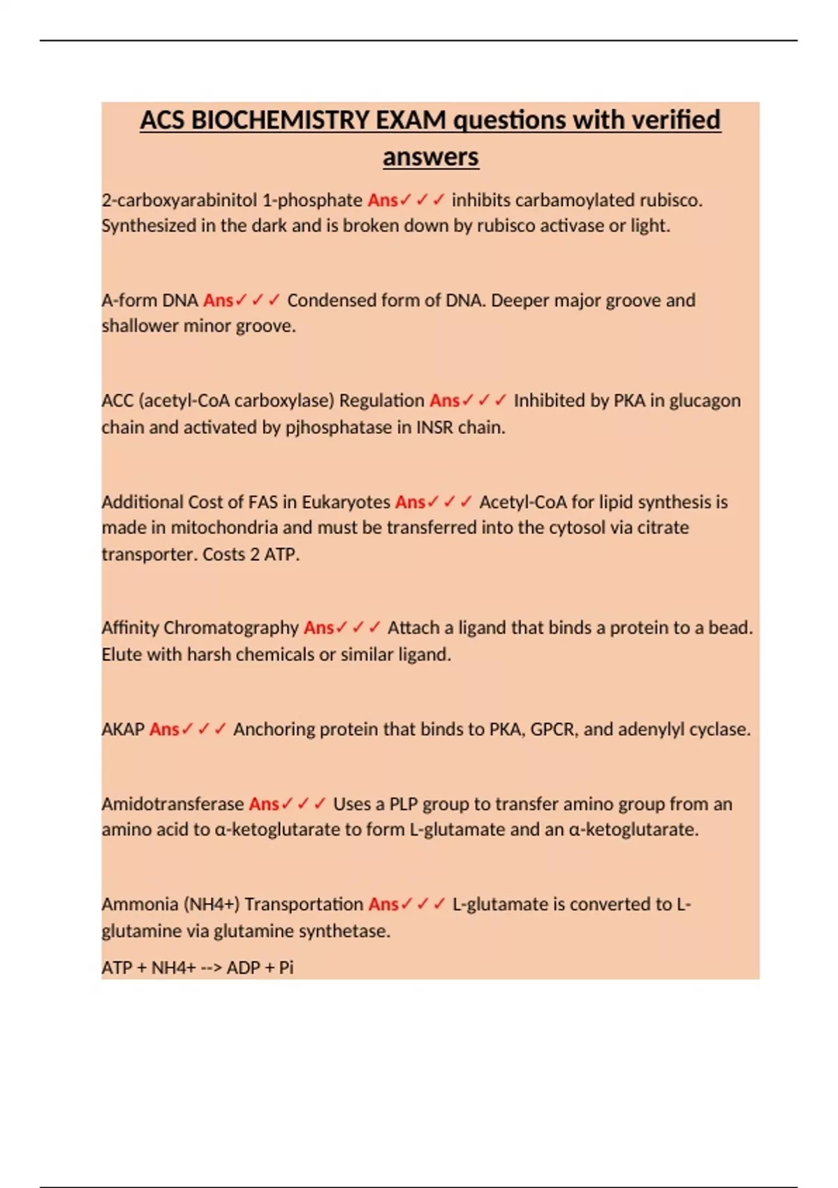 ACS BIOCHEMISTRY EXAM questions with verified answers.