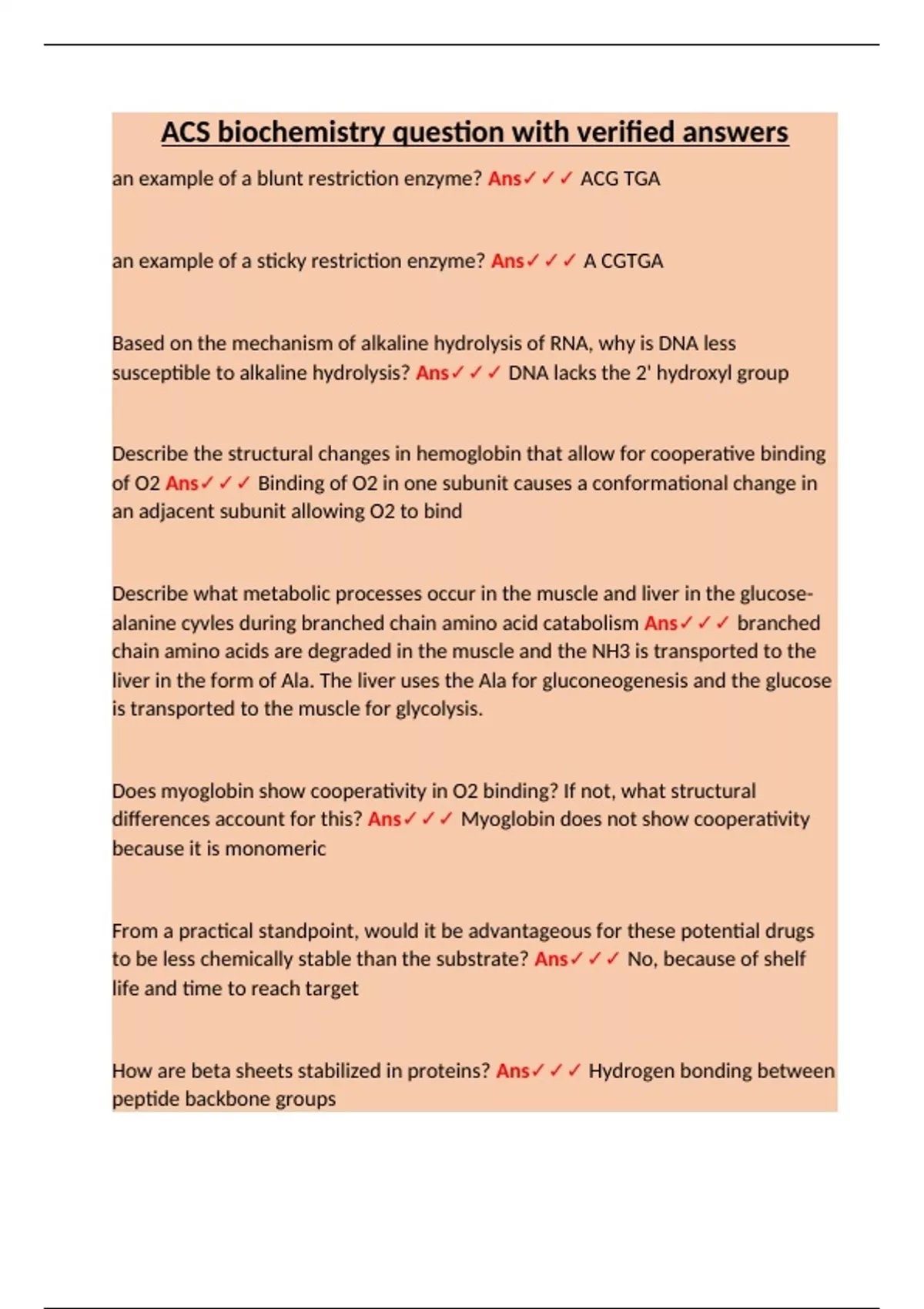 ACS biochemistry question with verified answers