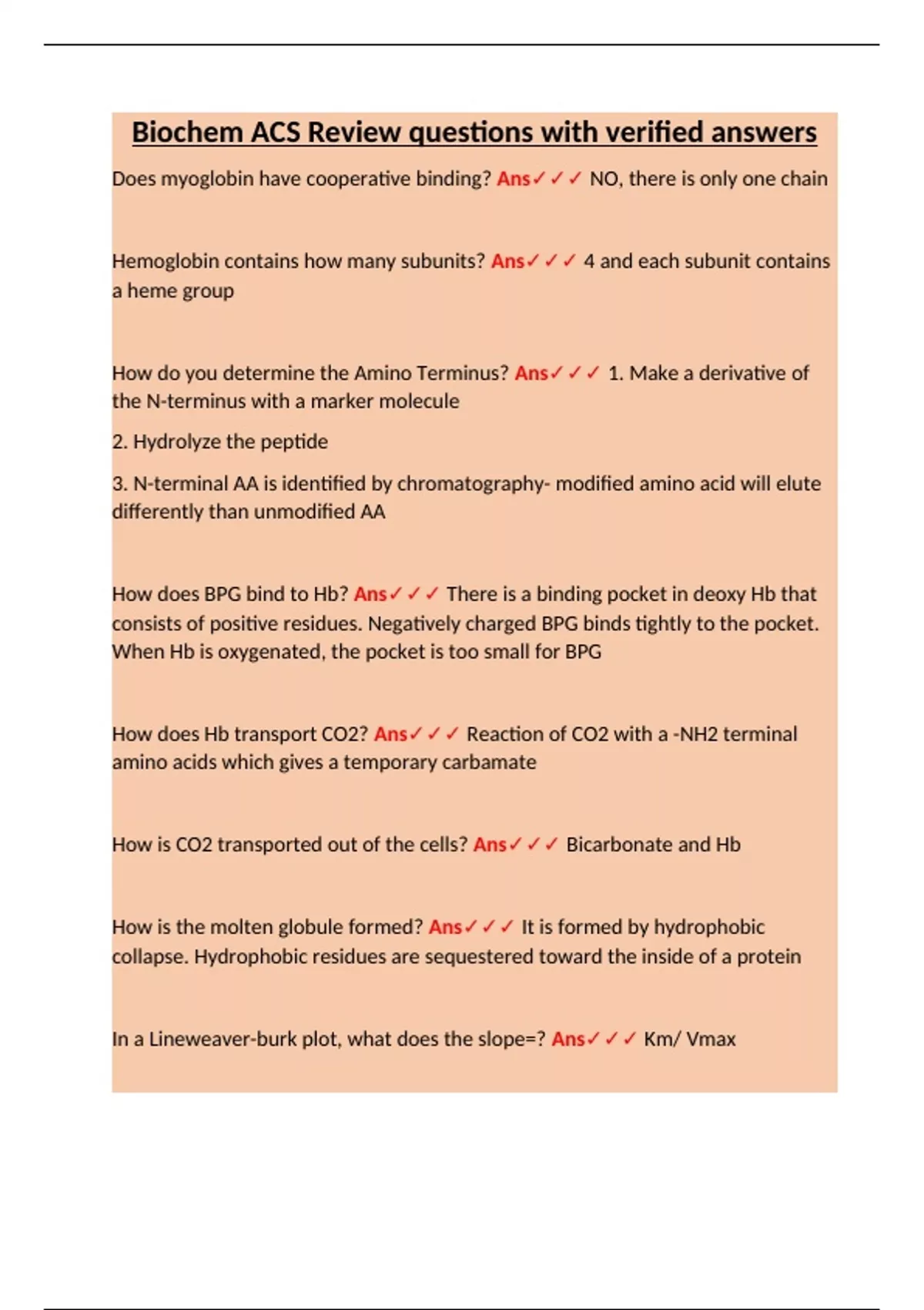 Biochem ACS Review questions with verified answers