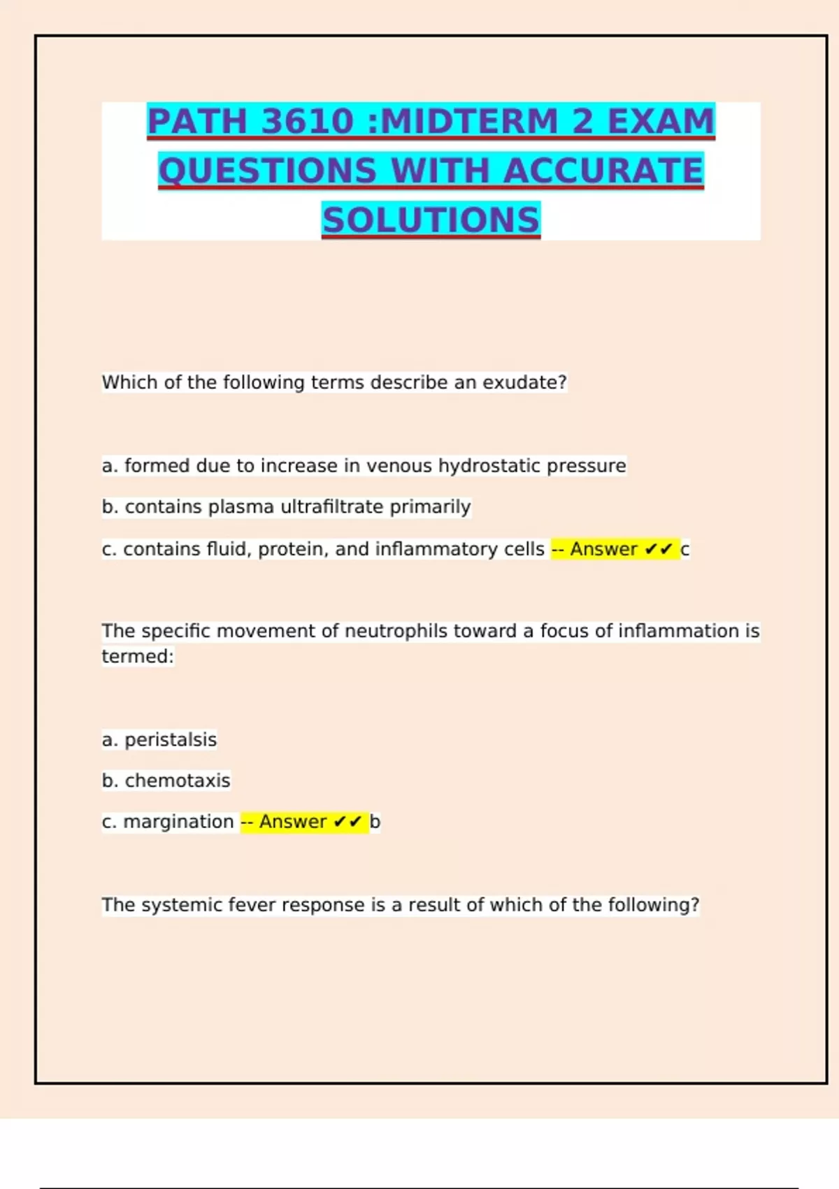 inflammation -- Answer ✔✔ a