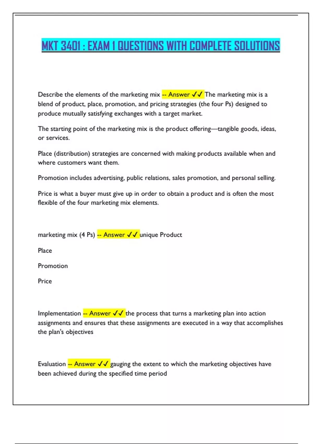 MKT 3401 : EXAM 1 QUESTIONS WITH COMPLETE SOLUTIONS
