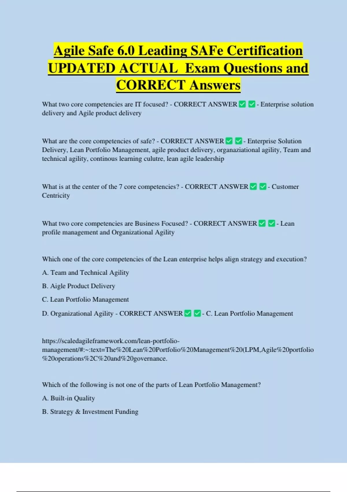 D. Organizational Agility - CORRECT ANSWER - C. Lean Portfolio Management