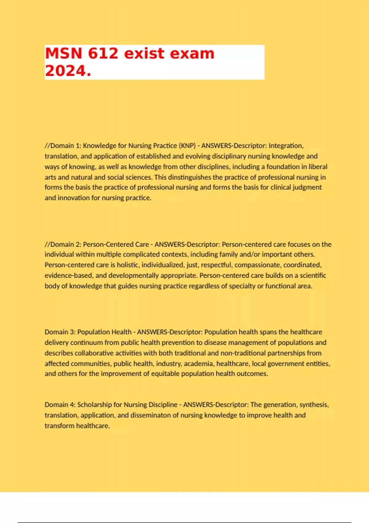 Domain 4: Scholarship for Nursing Discipline - ANSWERS-Descriptor: The generation, synthesis,