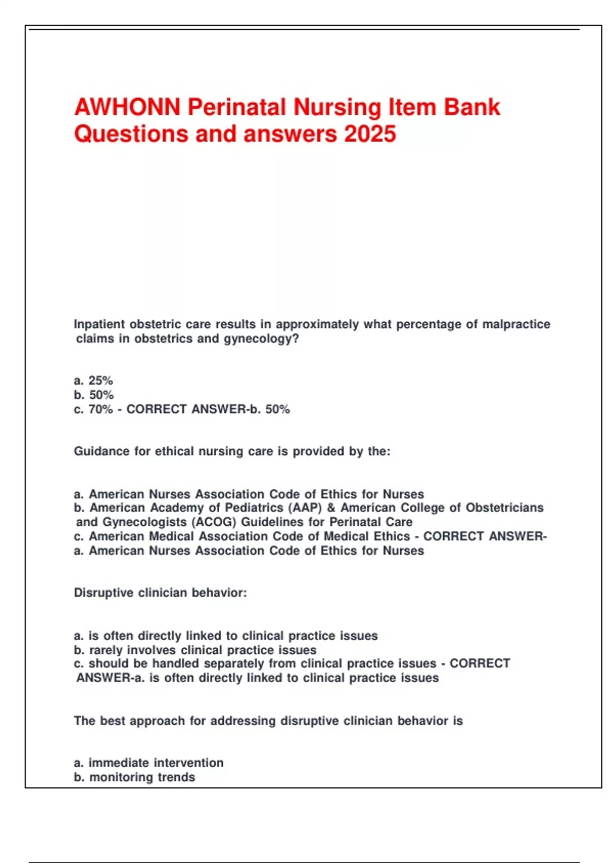 c. .American .Medical .Association .Code .of .Medical .Ethics .- .CORRECT .ANSWER-