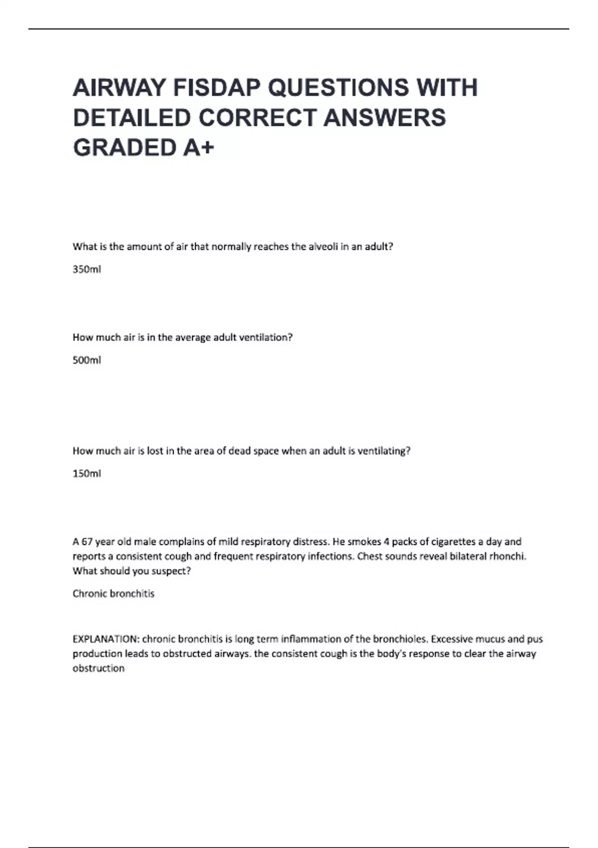 AIRWAY FISDAP QUESTIONS WITH DETAILED CORRECT ANSWERS GRADED A+