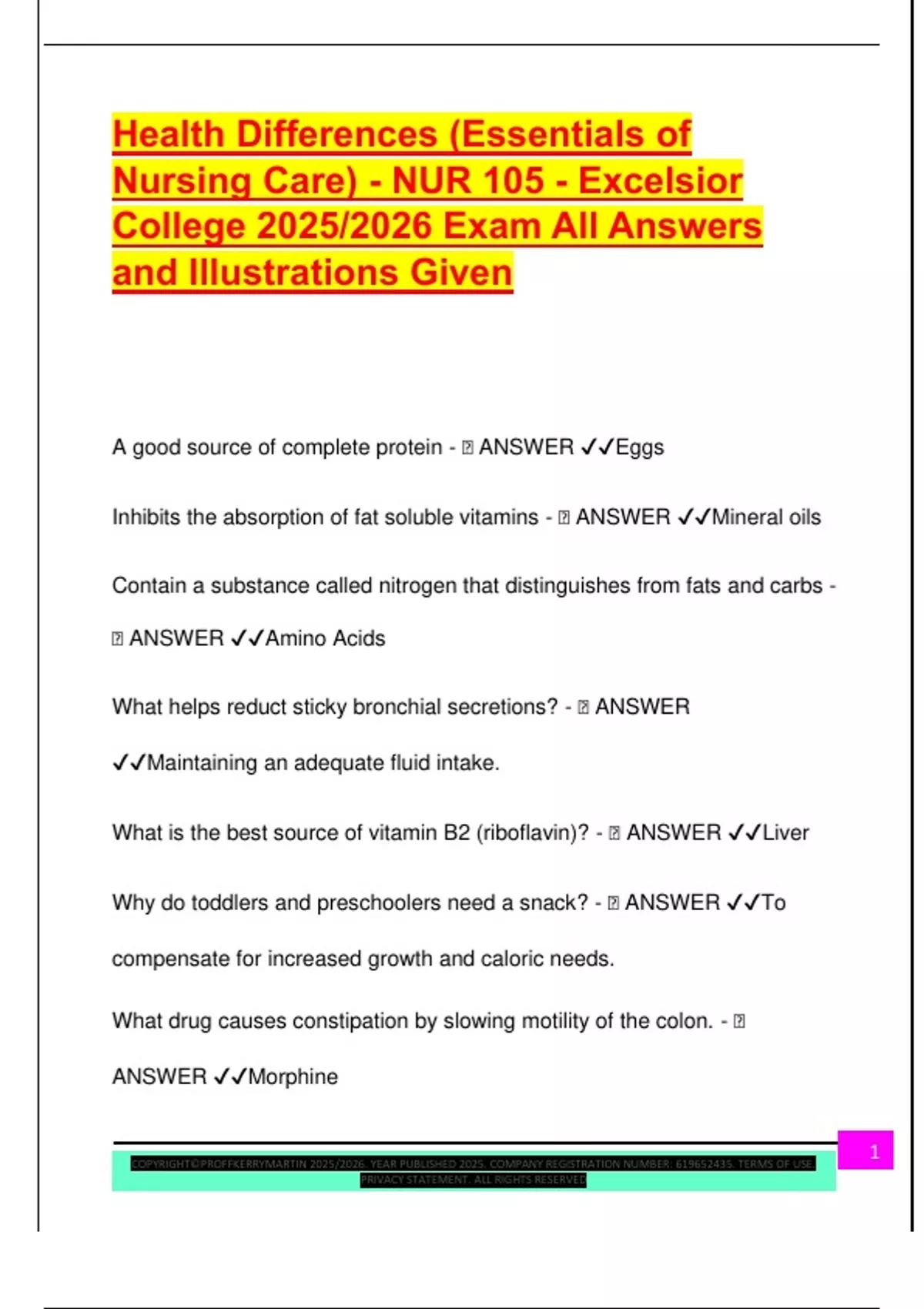 Health Differences (Essentials of Nursing Care) - NUR 105 - Excelsior College 2025/2026 Exam All Answers and Illustrations Given A good source of complete protein -