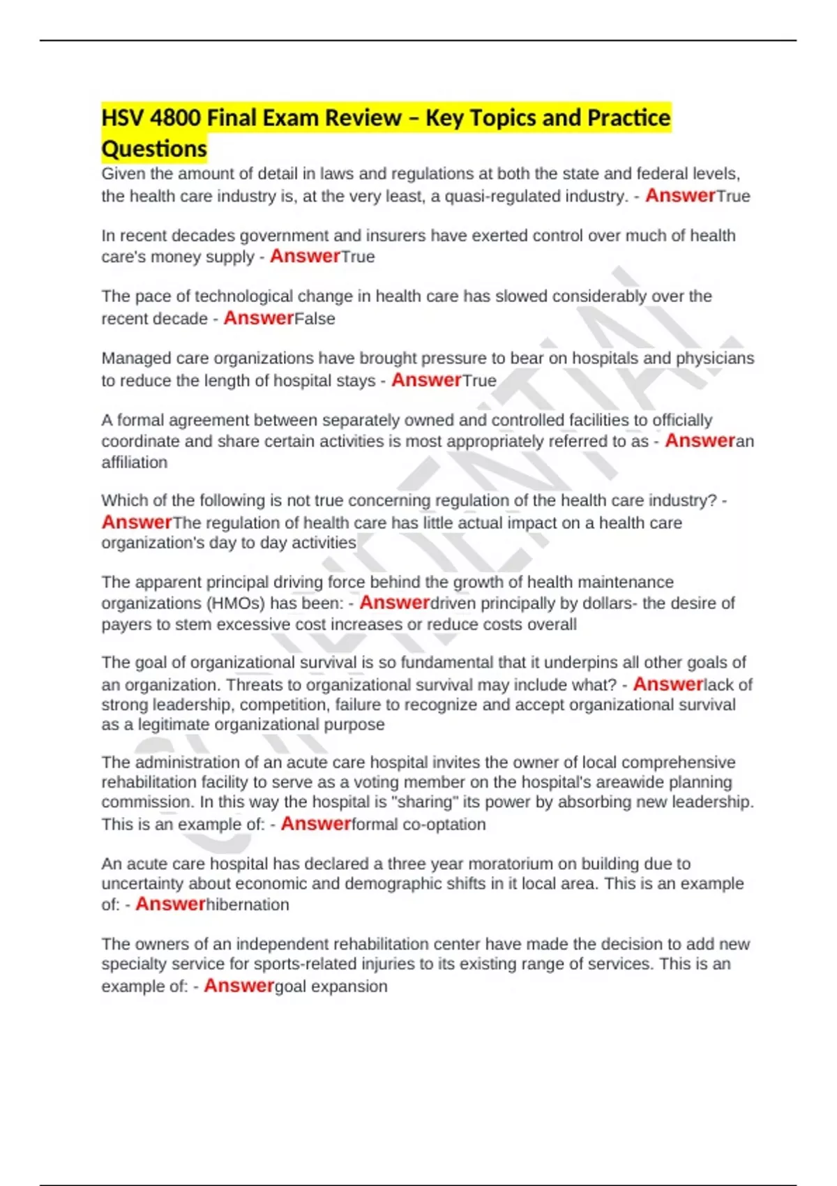 HSV 4800 Final Exam Review – Key Topics and Practice Questions Review material for the HSV 4800 Final Exam, covering major concepts in health services, leadership, and policy relevant to course objectives.