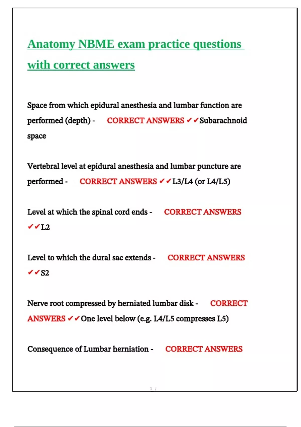 Level at which the spinal cord ends - 🔰CORRECT ANSWERS