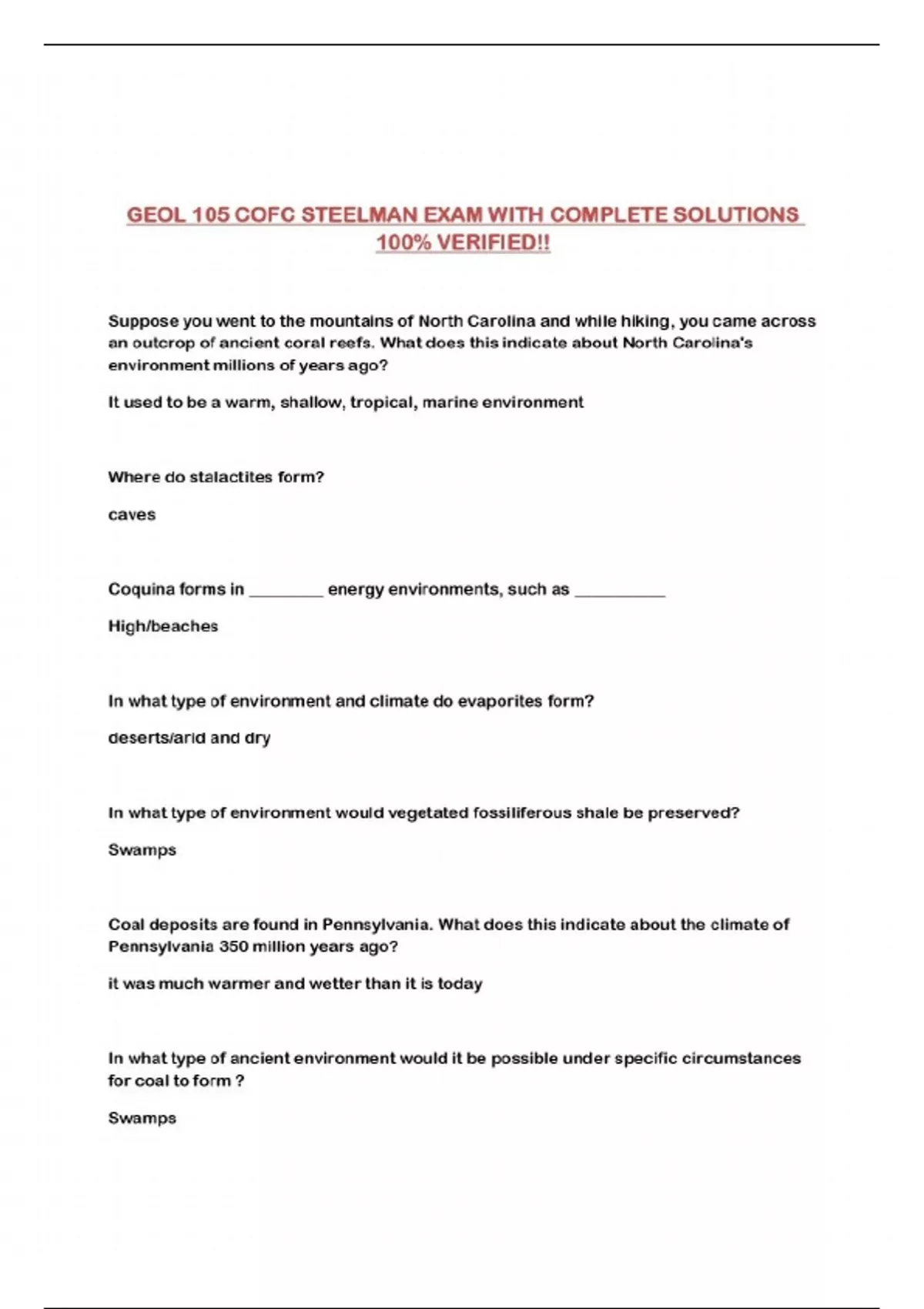 GEOL 105 COFC STEELMAN EXAM WITH COMPLETE SOLUTIONS 100% VERIFIED!!...