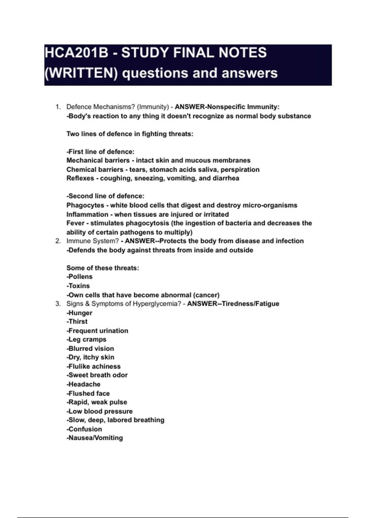 HCA201B - STUDY FINAL NOTES
