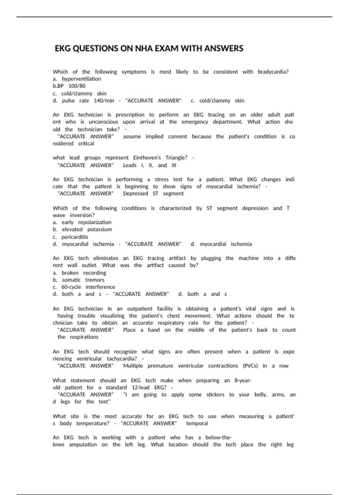EKG QUESTIONS ON NHA EXAM WITH ANSWERS