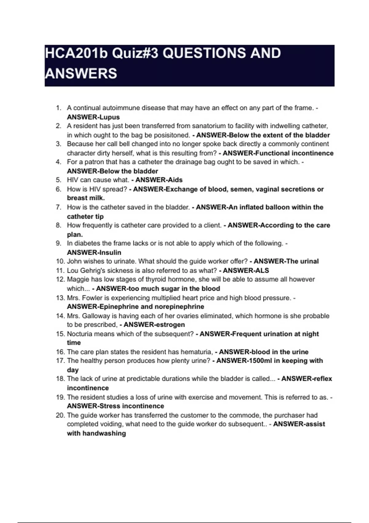 HCA201b Quiz#3 QUESTIONS AND