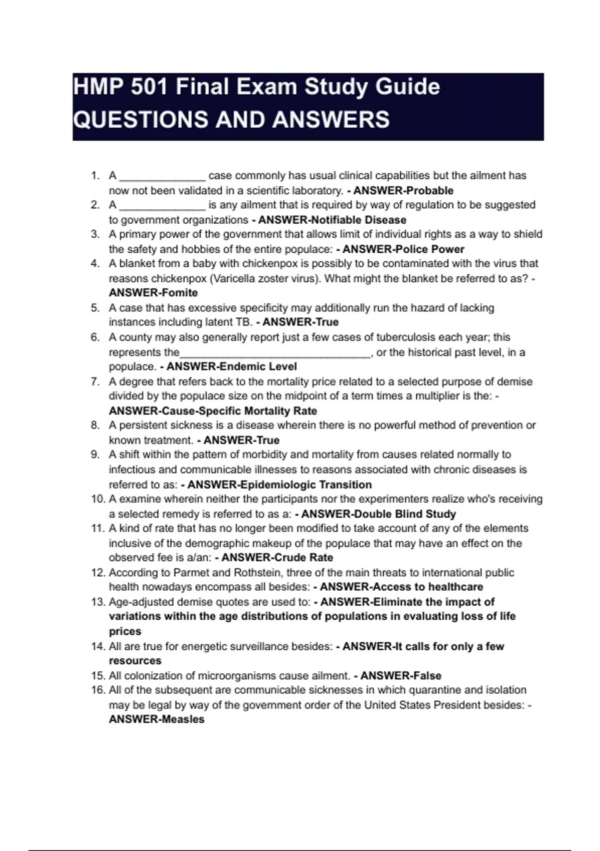 HMP 501 Final Exam Study Guide QUESTIONS AND ANSWERS