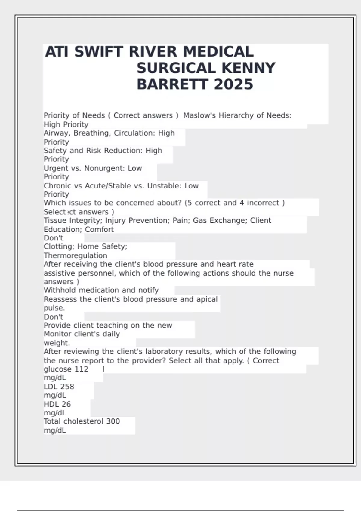 ATI SWIFT RIVER MEDICAL SURGICAL KENNY BARRETT 2025