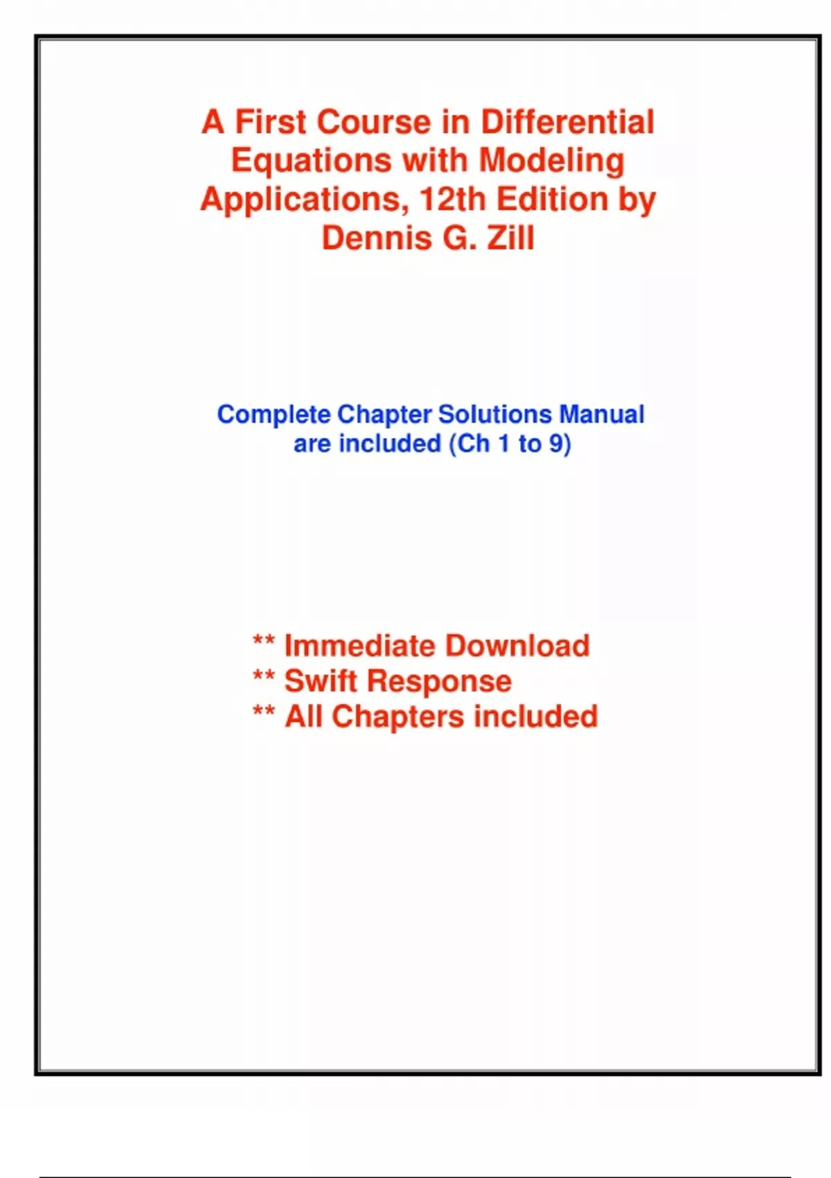 ONLY GENUINE TESTBANK. Test Bank for A First Course in Differential Equations with Modeling Applications, 12th Edition Zill. All Chapters included. Verified Answers. A+ Answers