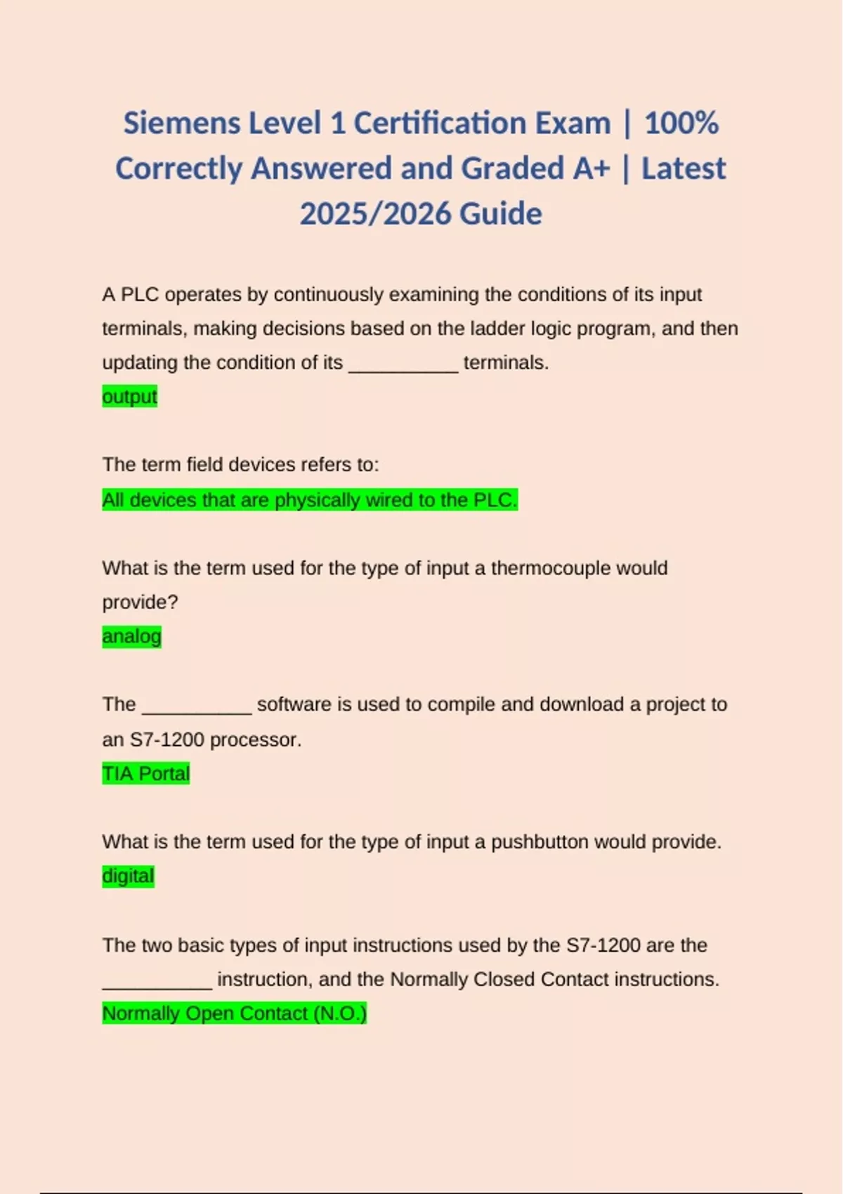 Siemens Level 1 Certification Exam | 100%