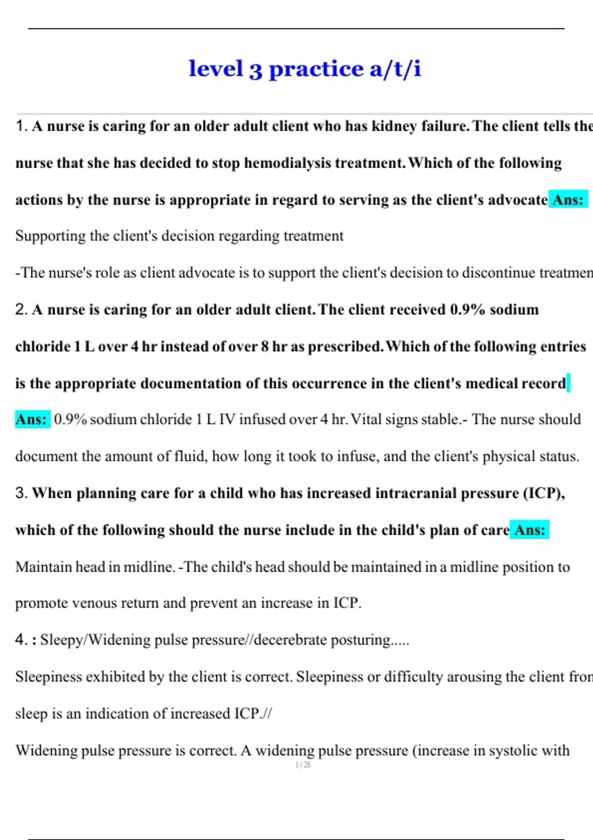 1. A nurse is caring for an older adult client who has kidney failure. The client tells the