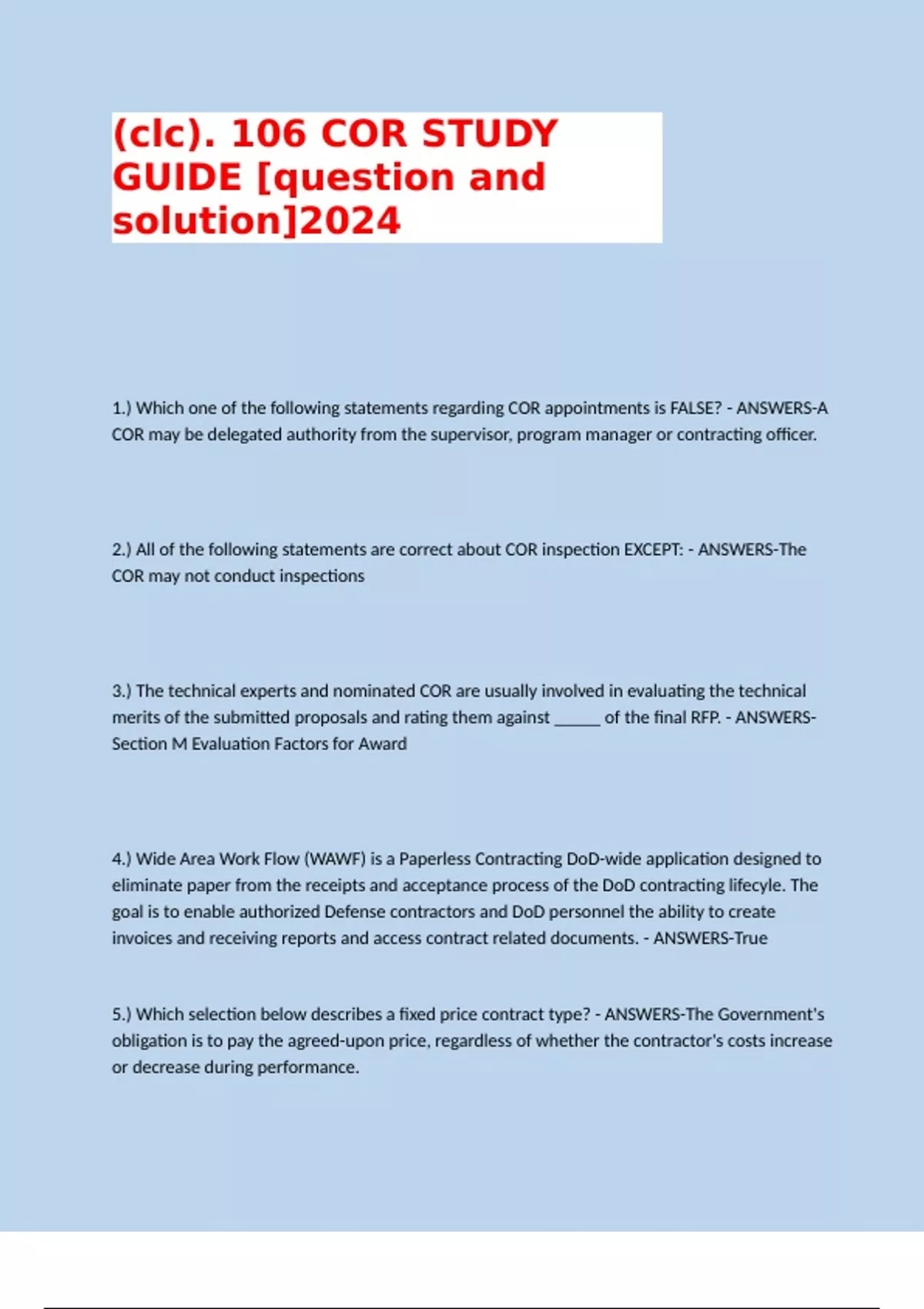 Contracting Officer Representative (COR) [ STUDY GUIDE]