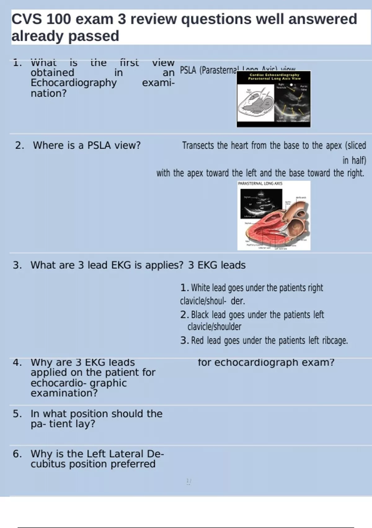 2. Where is a PSLA view? Transects the heart from the base to the apex (sliced