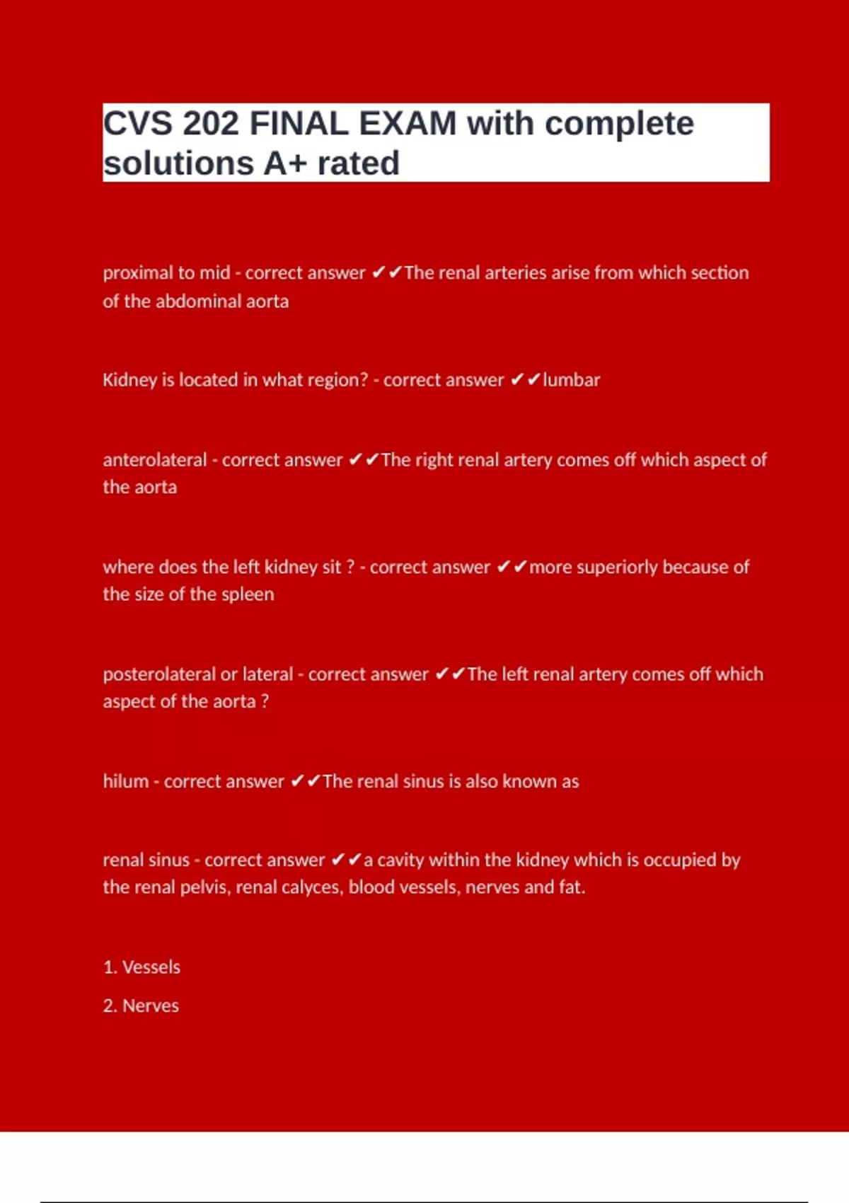 CVS 202 FINAL EXAM with complete solutions A+ rated
