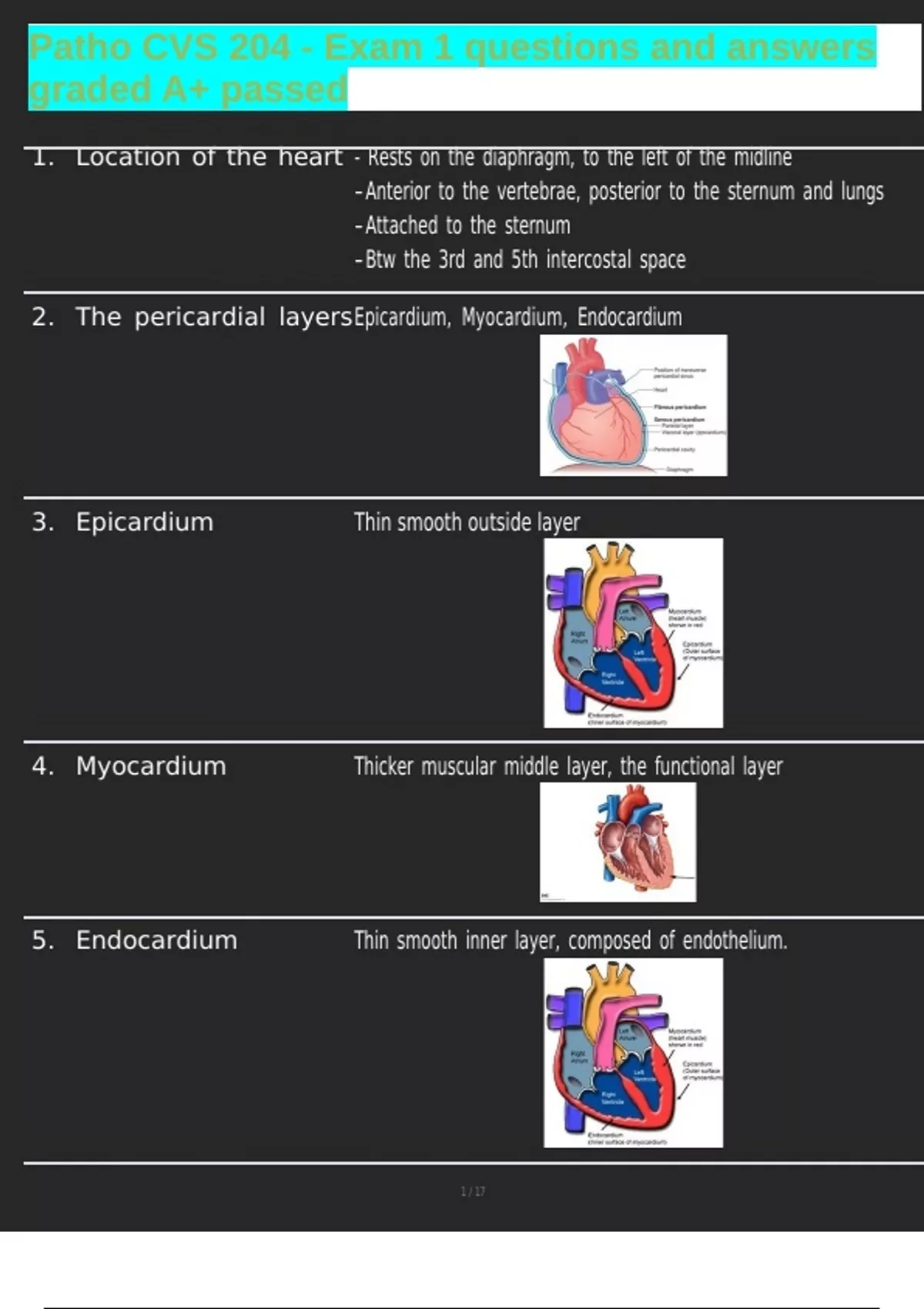Patho CVS 204 - Exam 1 questions and answers graded A+ passed