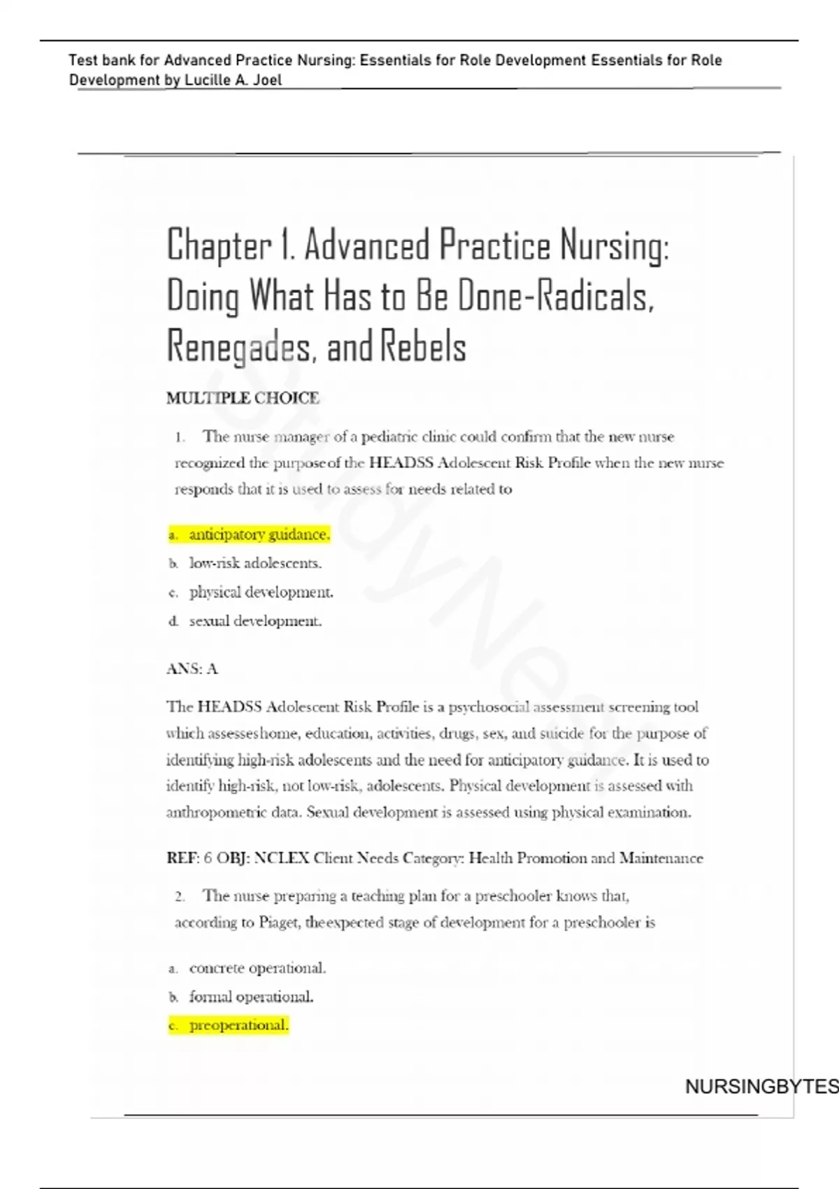 Test bank for Advanced Practice Nursing: Essentials for Role Development Essentials for Role